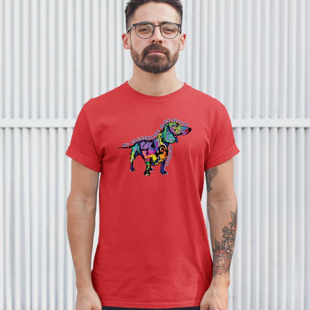 MY DACHSHUND IS MY SPIRIT ANIMAL t-shirt cute puppy dog lover men's tee red