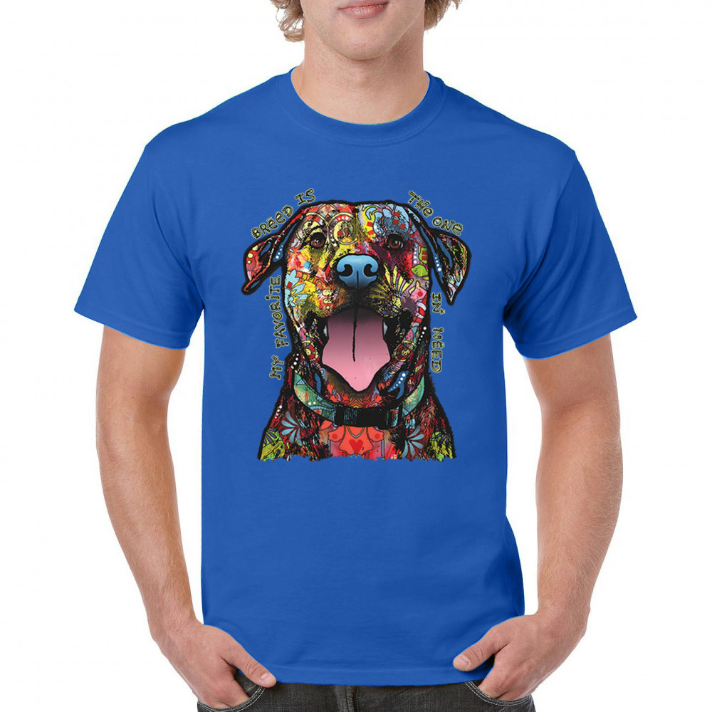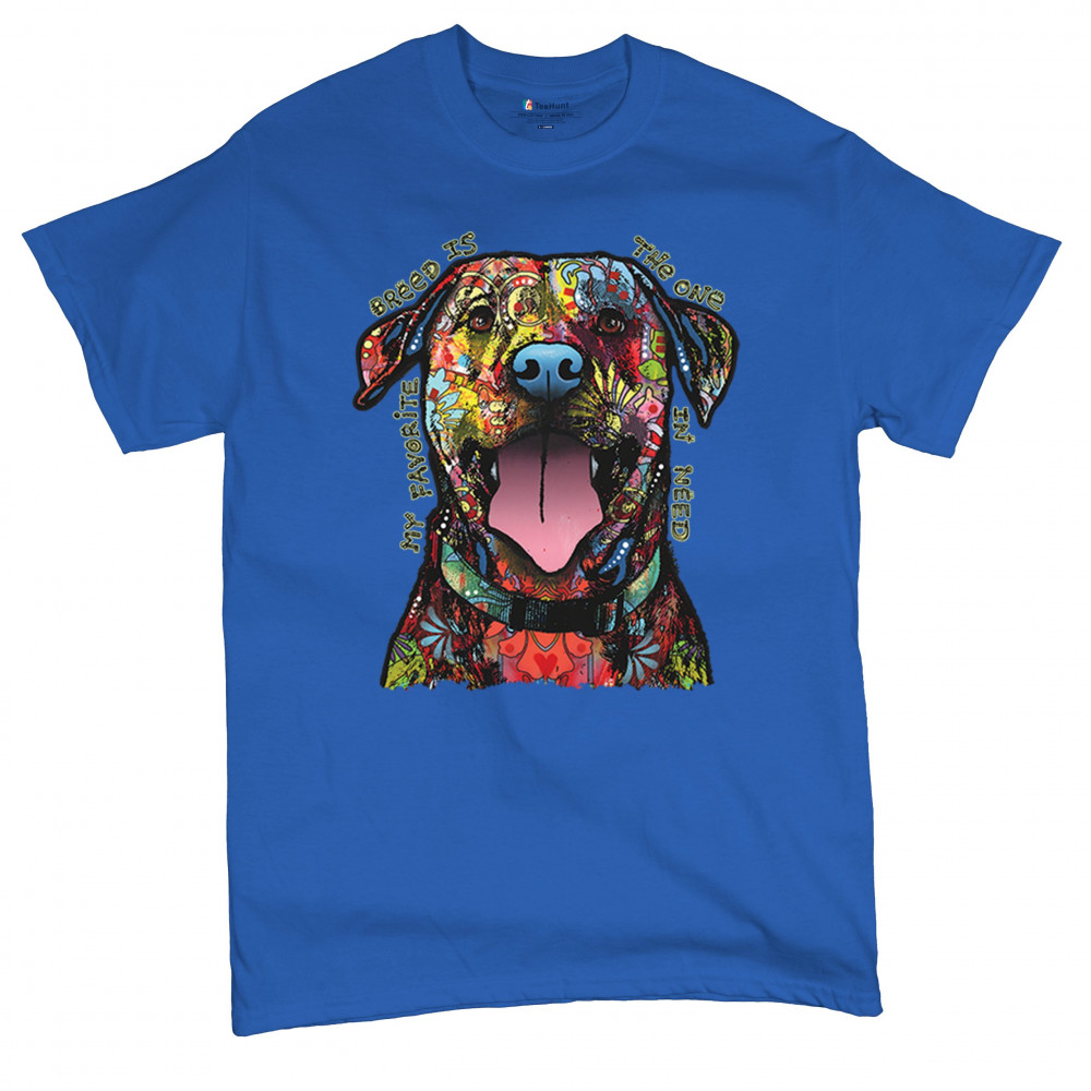 MY FAVORITE BREED IS THE ONE IN NEED t-shirt dean russo neon dog men's tee royal blue
