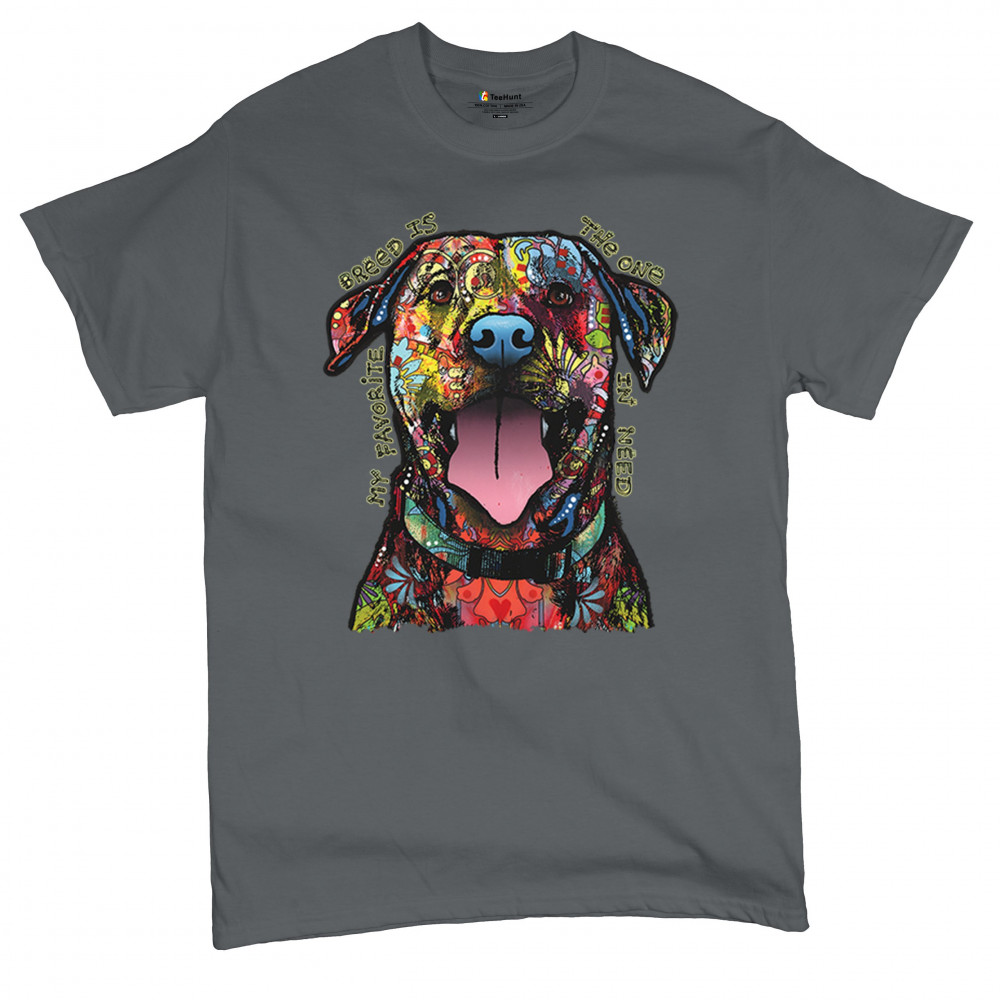 MY FAVORITE BREED IS THE ONE IN NEED t-shirt dean russo neon dog men's tee charcoal