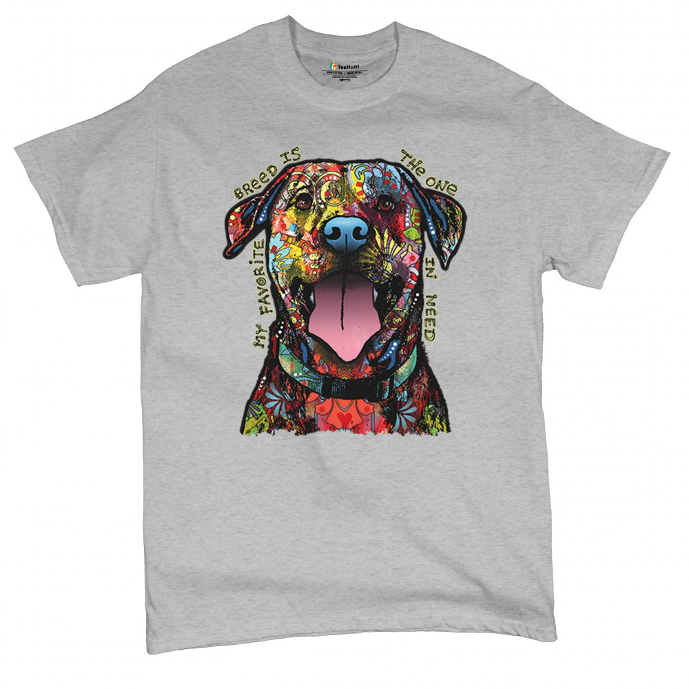 MY FAVORITE BREED IS THE ONE IN NEED t-shirt dean russo neon dog men's tee gray