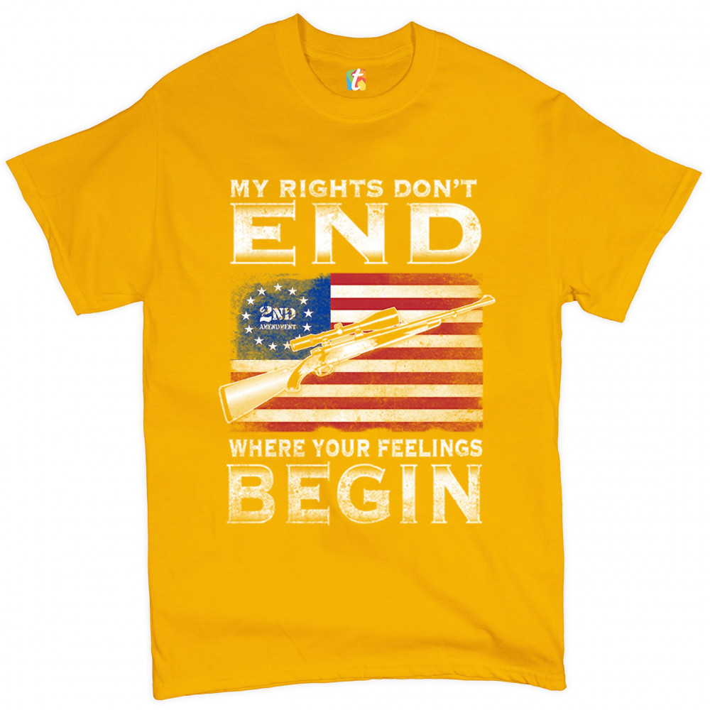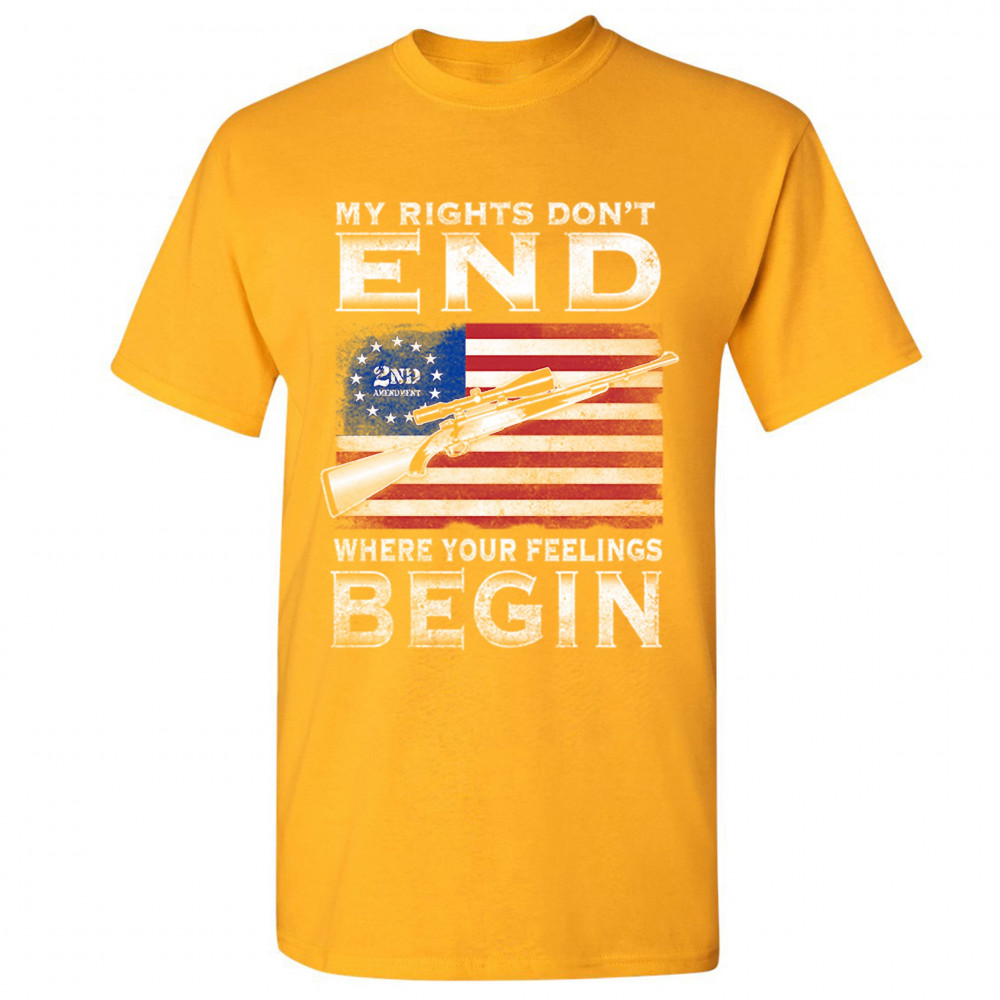 MY RIGHTS DON'T END WHERE YOUR FEELINGS BEGIN t-shirt 2nd amendment men's tee yellow