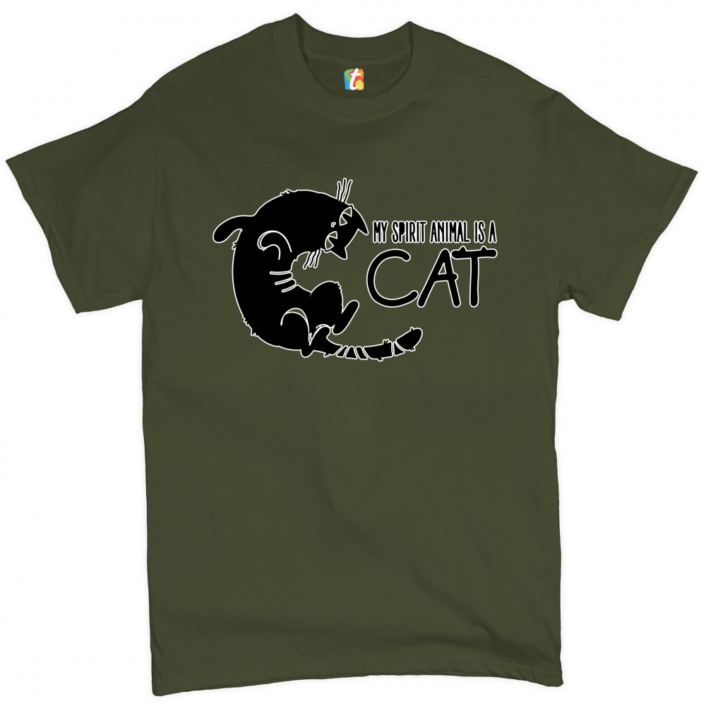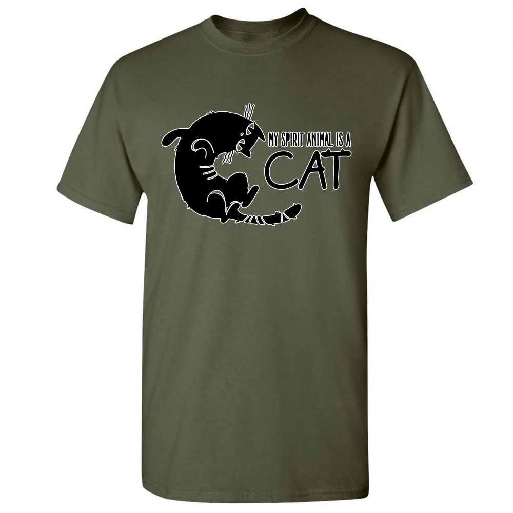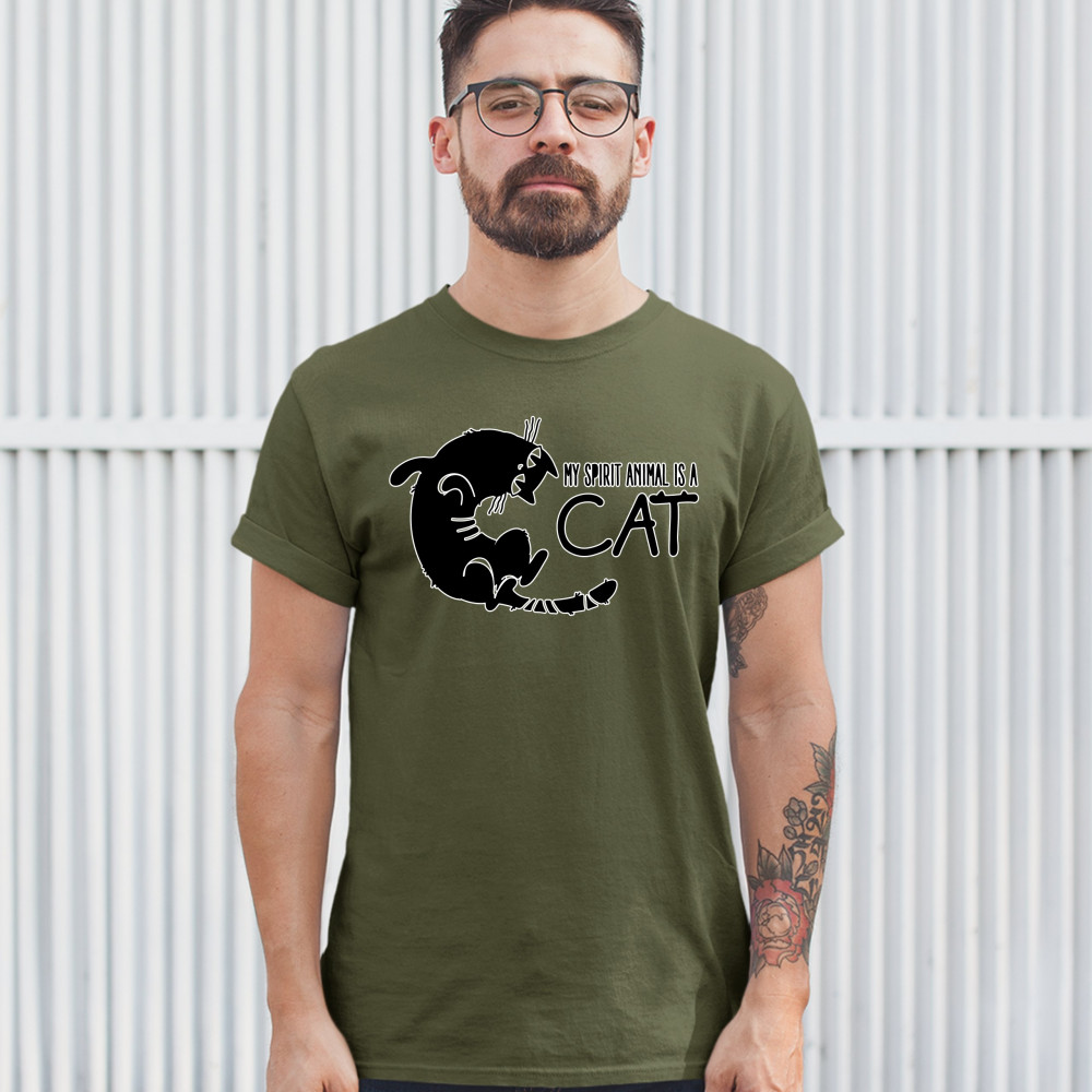 MY SPIRIT ANIMAL IS A CAT t-shirt cute kitty funny kitten men's tee military green
