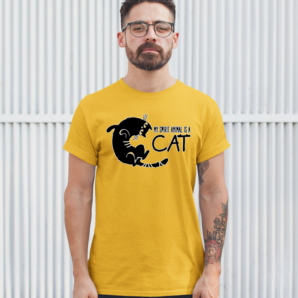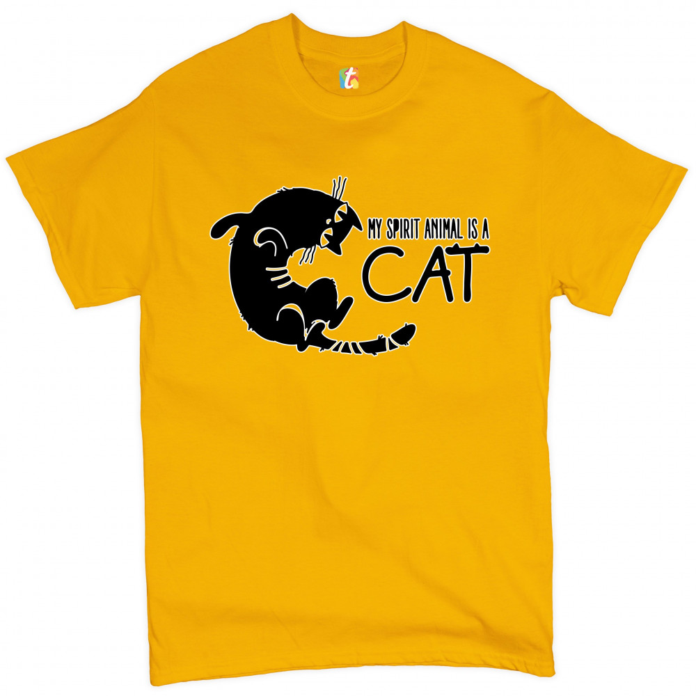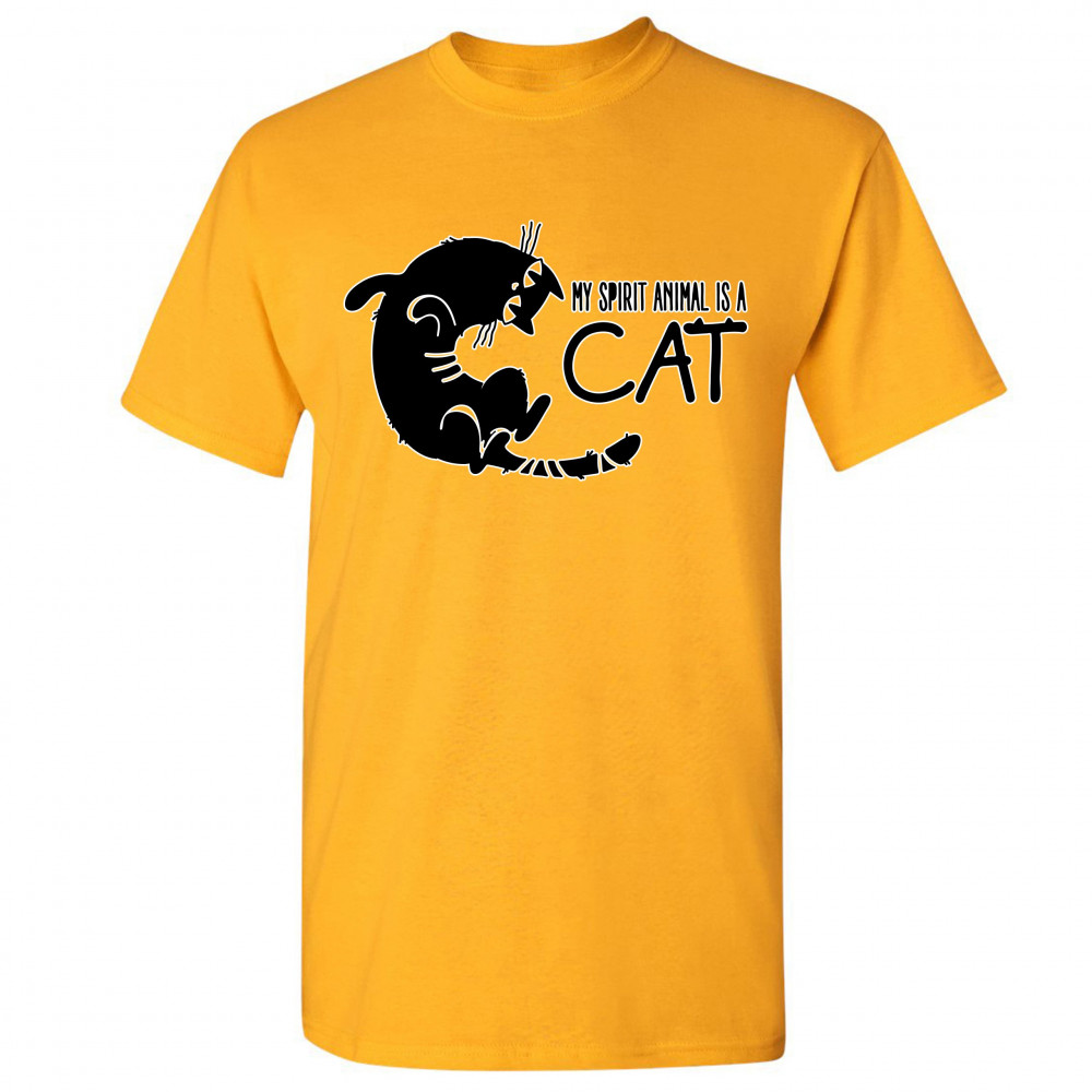 MY SPIRIT ANIMAL IS A CAT t-shirt cute kitty funny kitten men's tee yellow
