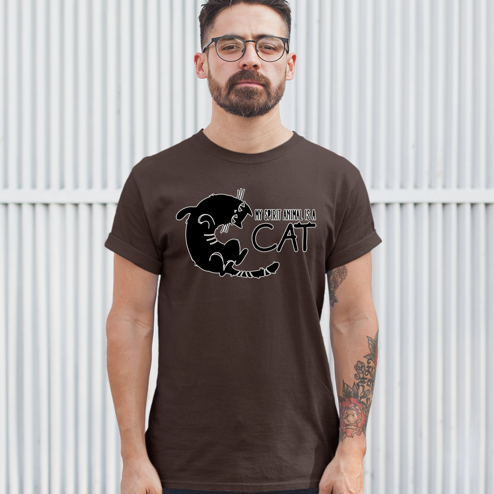 MY SPIRIT ANIMAL IS A CAT t-shirt cute kitty funny kitten men's tee brown