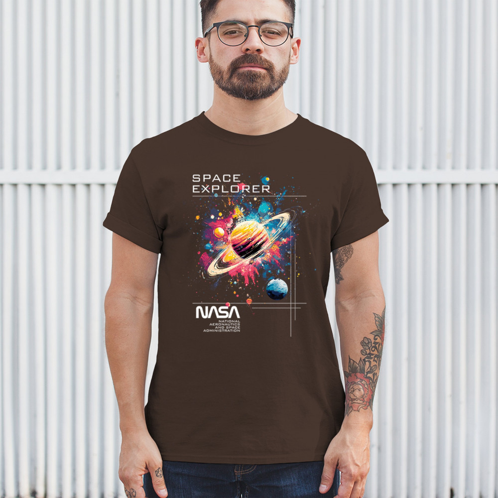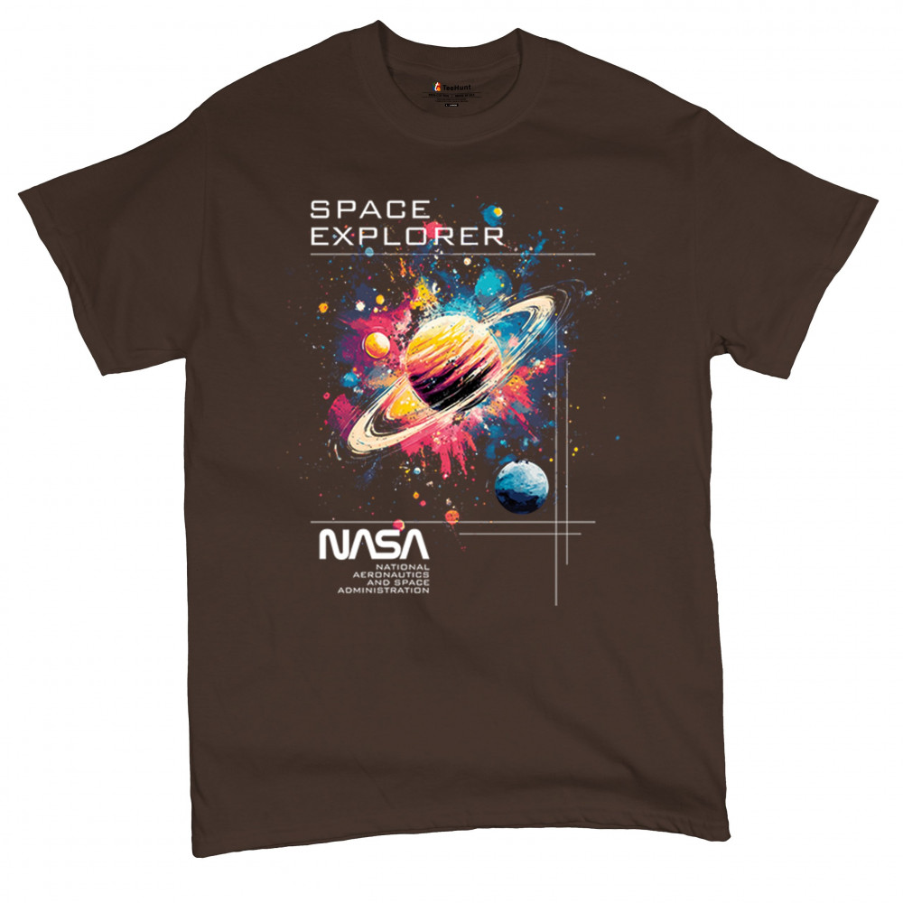 Bold and inspiring, this NASA Space Explorer design features Saturn in a cosmic paint splash with official branding. Ideal for fans of the Apollo program, moon landings, rocket launch history, and vintage NASA aesthetics. A great fit for space travel lovers, cosmic dreamers, and proud supporters of American exploration.