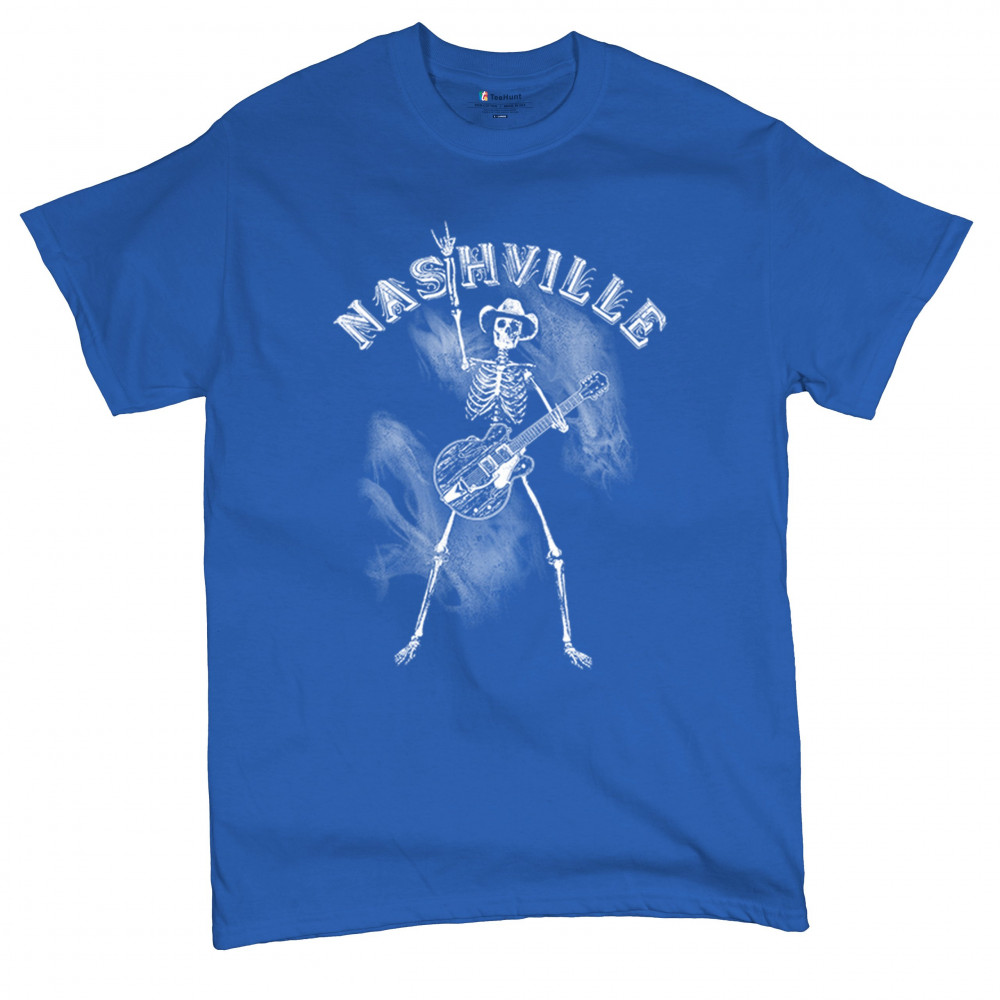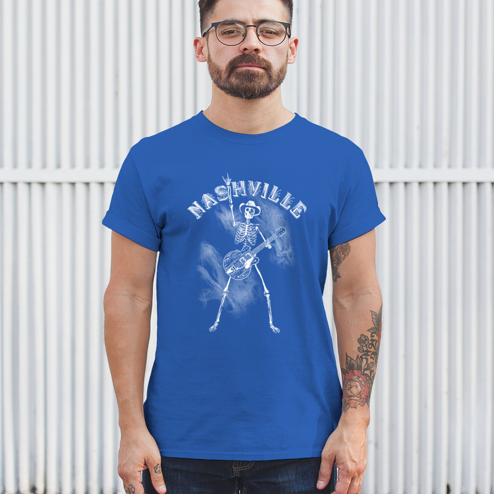 Bold skeleton cowboy design with Nashville grit and country rock vibes. Perfect for fans of music, guitars, and rebel southern style.