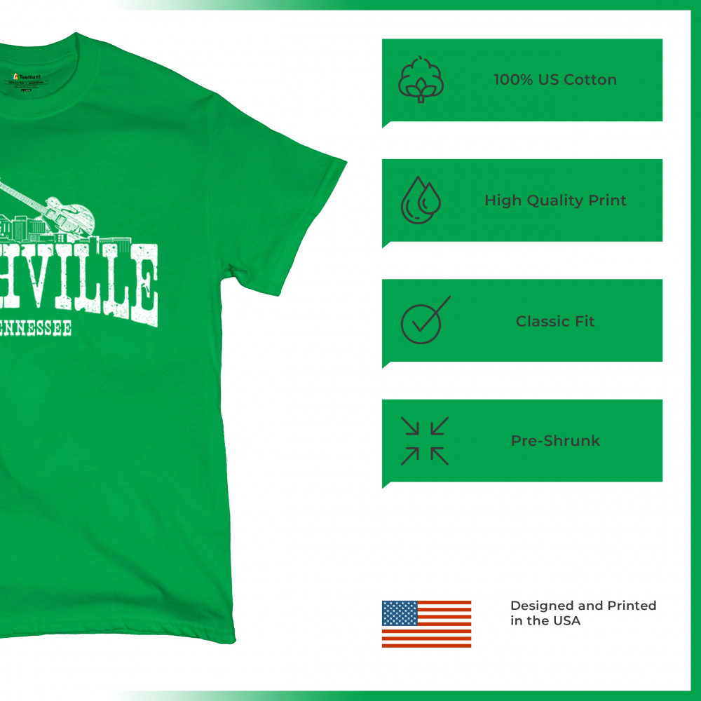 Vintage Nashville skyline and guitar design perfect for music fans, tourists, and proud Tennesseans. Ideal for concerts and city adventures.