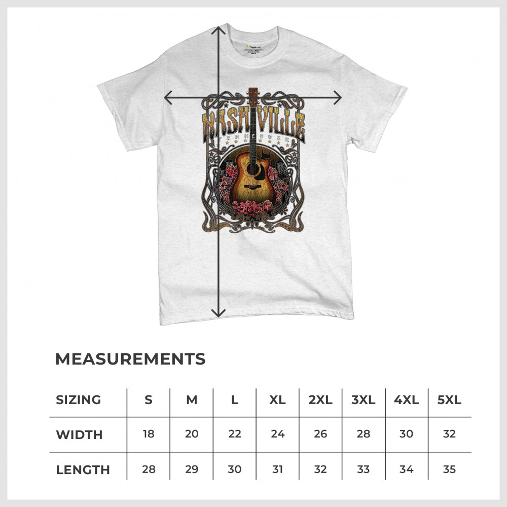 Celebrate the musical soul of Nashville with this vintage guitar and roses design. Perfect for fans of country, bluegrass, and folk music, it captures the charm of Music City with Western-style artwork. Great as a souvenir or for wearing to concerts, tours, and Tennessee road adventures.