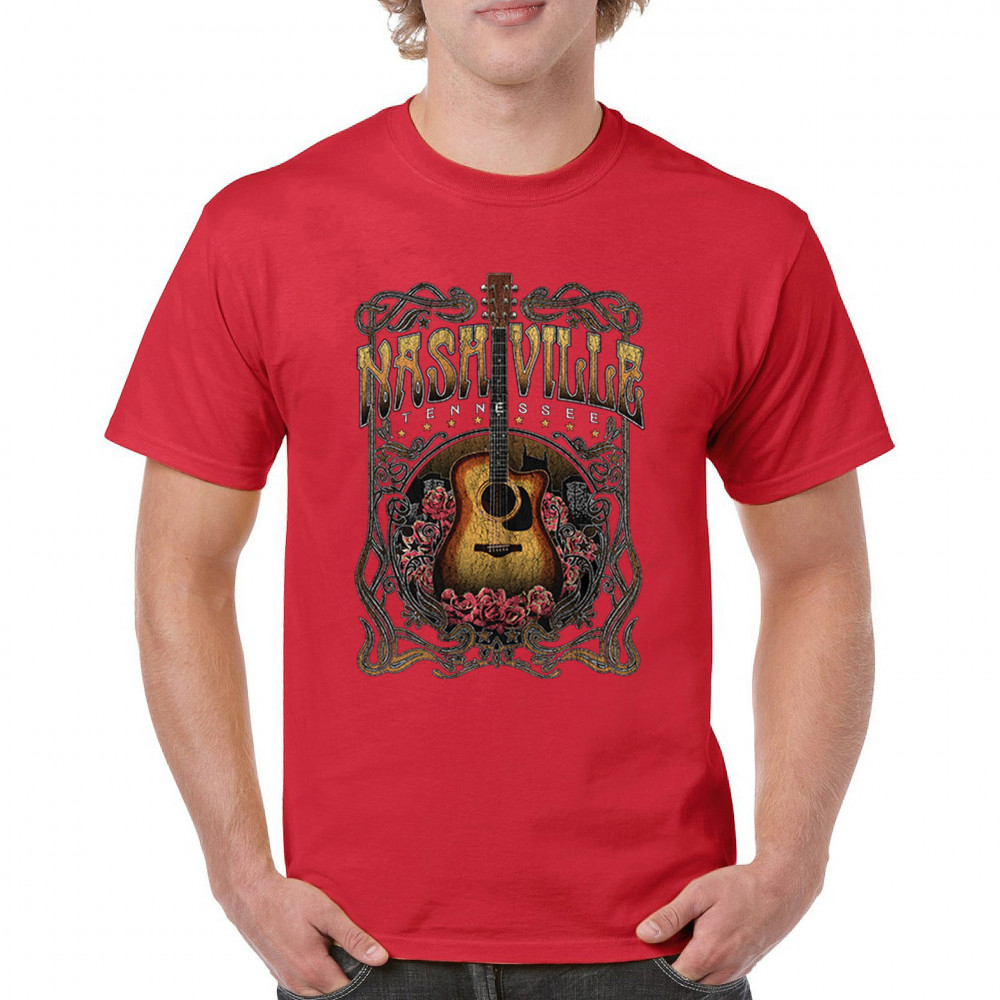 Celebrate the musical soul of Nashville with this vintage guitar and roses design. Perfect for fans of country, bluegrass, and folk music, it captures the charm of Music City with Western-style artwork. Great as a souvenir or for wearing to concerts, tours, and Tennessee road adventures.