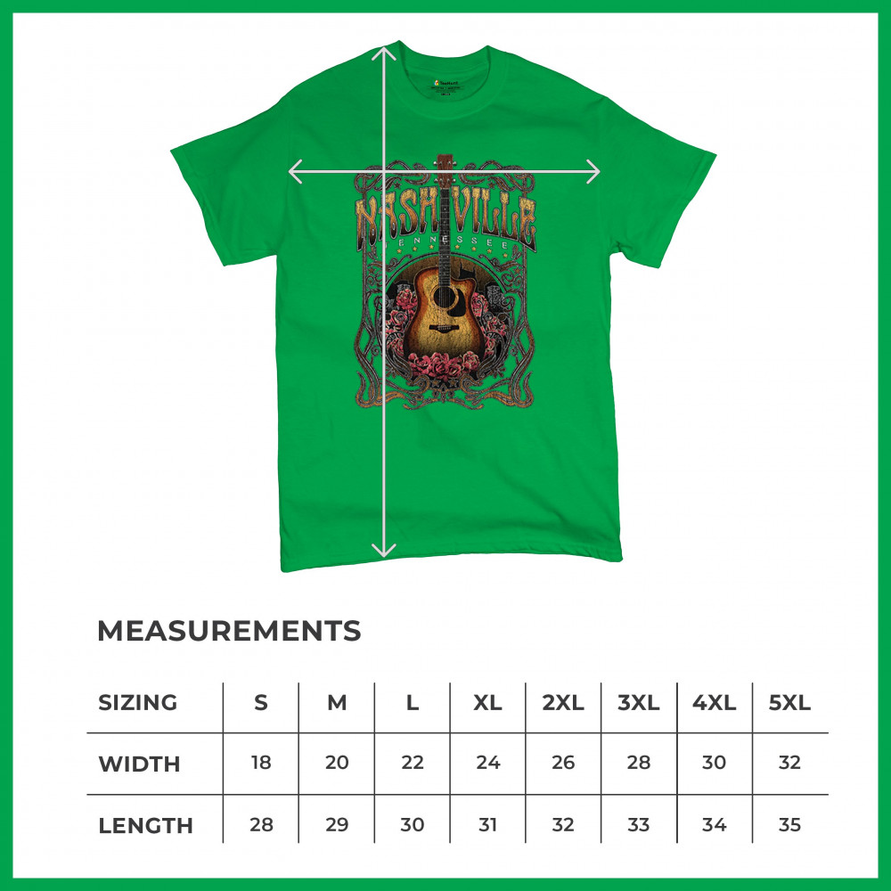 Celebrate the musical soul of Nashville with this vintage guitar and roses design. Perfect for fans of country, bluegrass, and folk music, it captures the charm of Music City with Western-style artwork. Great as a souvenir or for wearing to concerts, tours, and Tennessee road adventures.