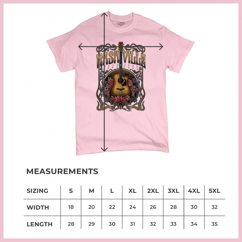 Celebrate the musical soul of Nashville with this vintage guitar and roses design. Perfect for fans of country, bluegrass, and folk music, it captures the charm of Music City with Western-style artwork. Great as a souvenir or for wearing to concerts, tours, and Tennessee road adventures.