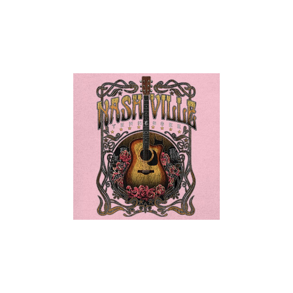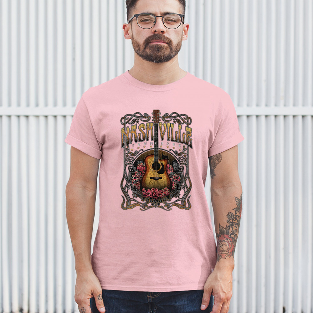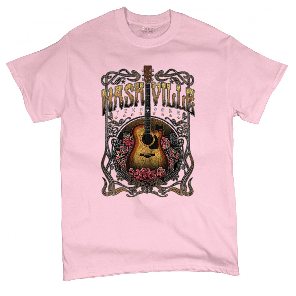 Vintage Nashville Tennessee design with rustic guitar and roses. Great for concerts, country music fans, road trips, and souvenir wear.
