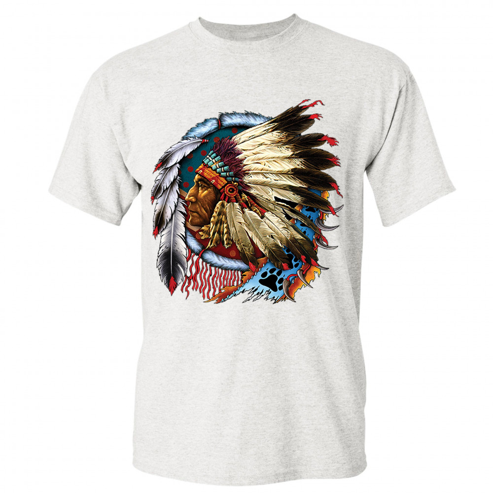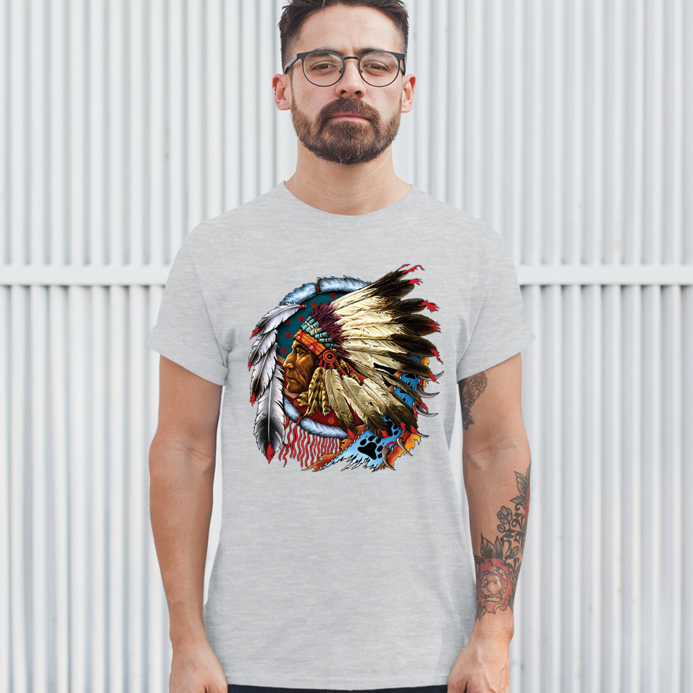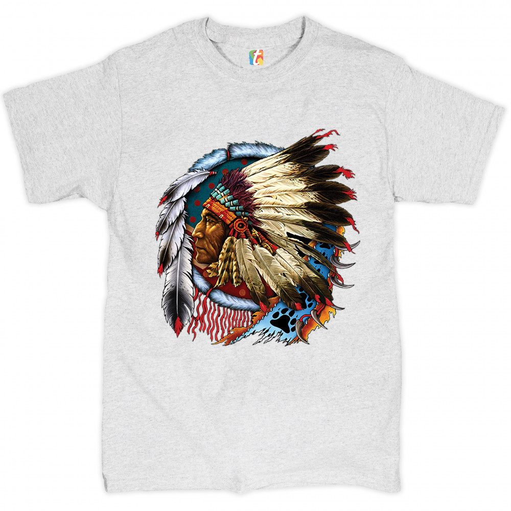 NATIVE AMERICAN CHIEF t-shirt war bonnet dreamcatcher indigenous men's tee ash gray