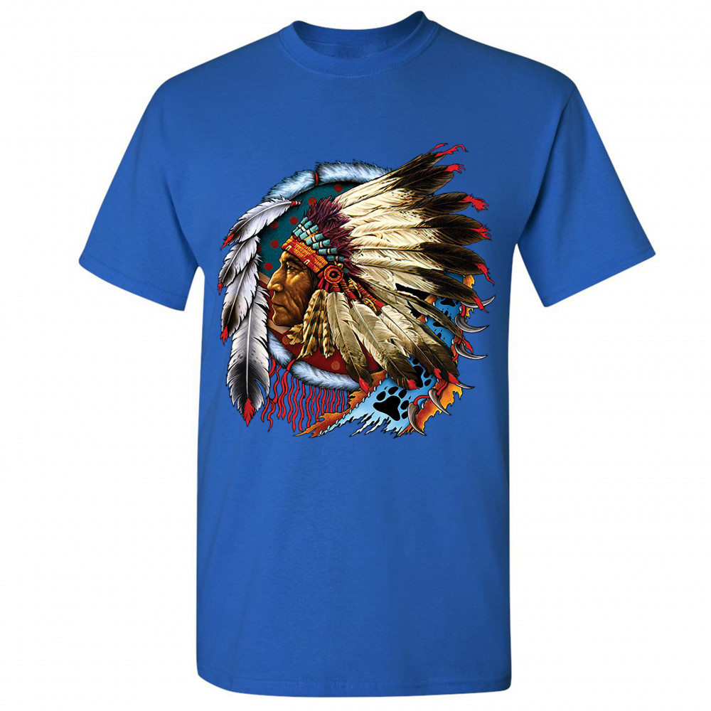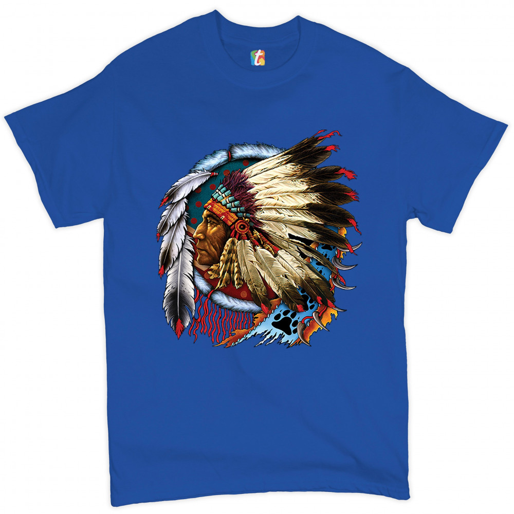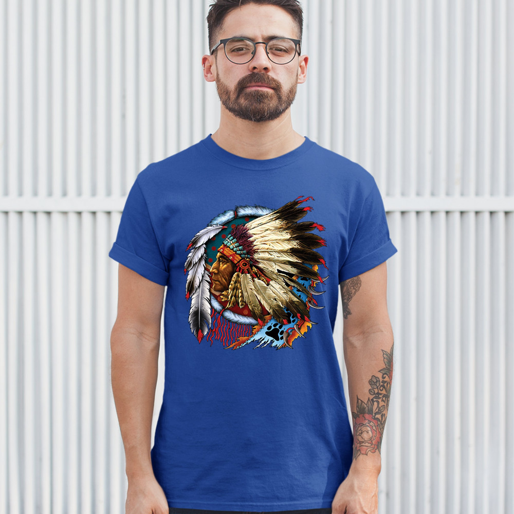 NATIVE AMERICAN CHIEF t-shirt war bonnet dreamcatcher indigenous men's tee royal blue