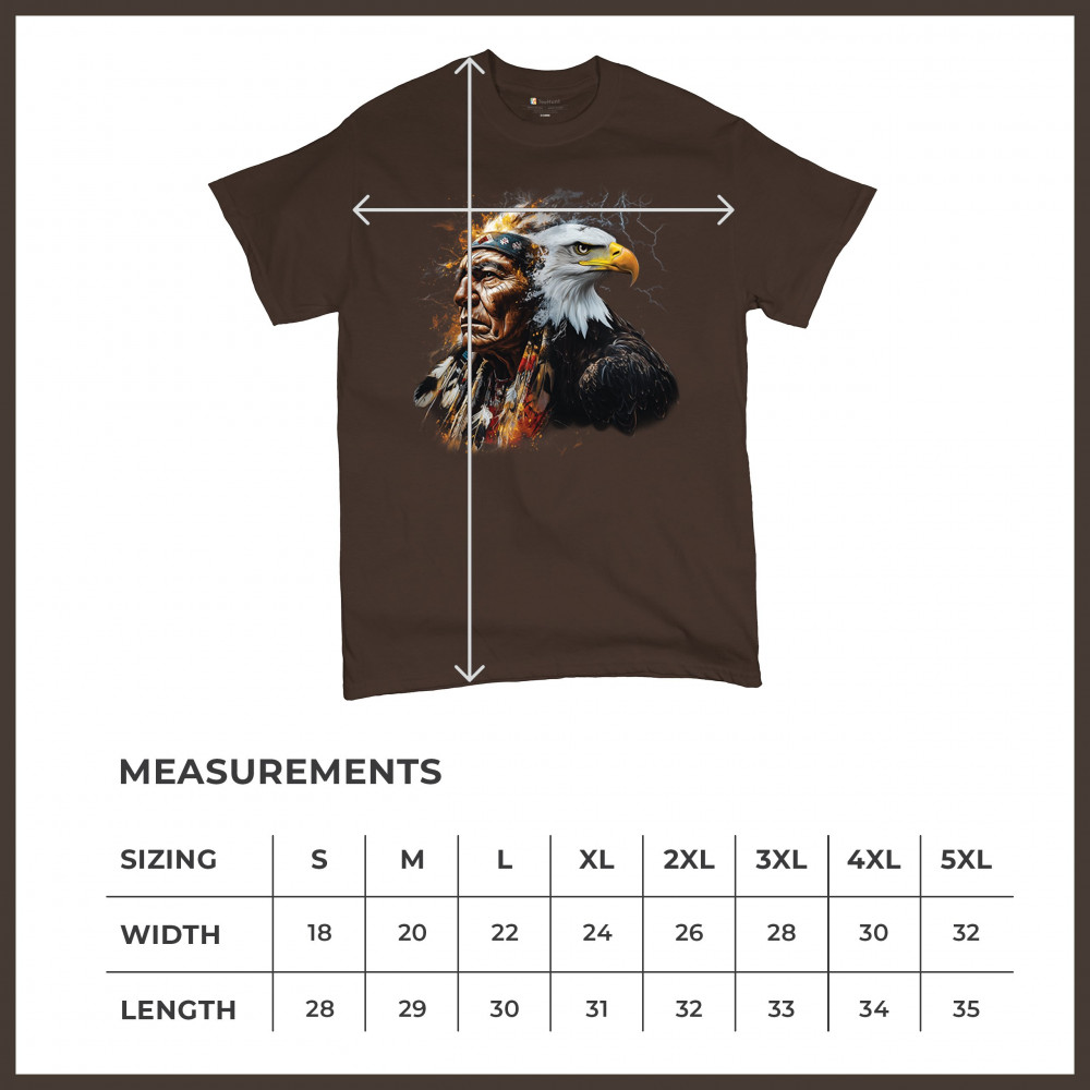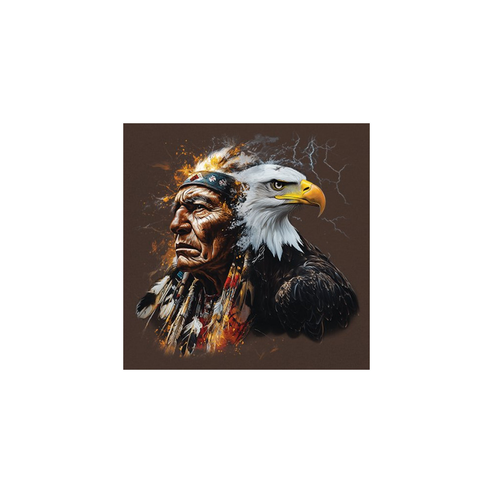 This electrifying design showcases a Native American chief with a bold bald eagle, surrounded by lightning and fire. It blends spiritual animal symbolism with cultural strength and pride. Ideal for admirers of tribal heritage, ancestral energy, and fierce visual storytelling through nature and tradition.