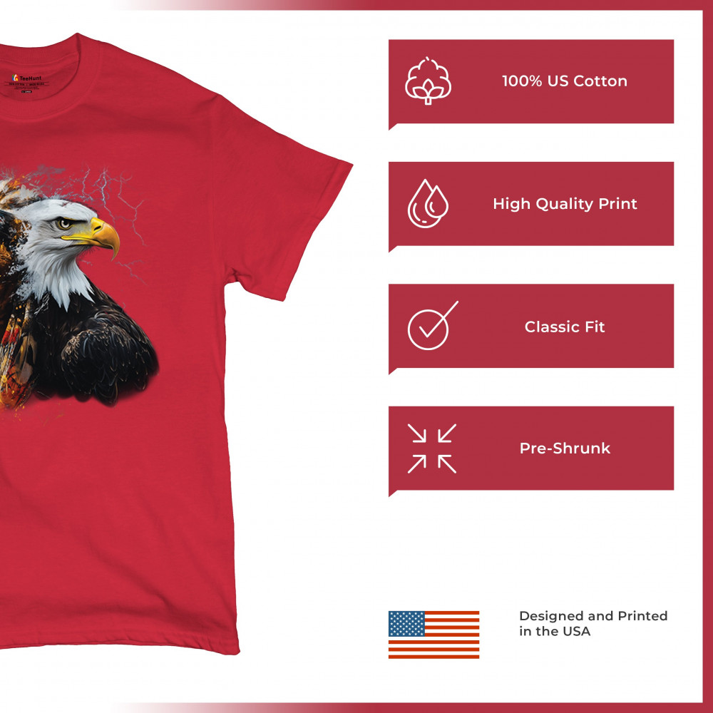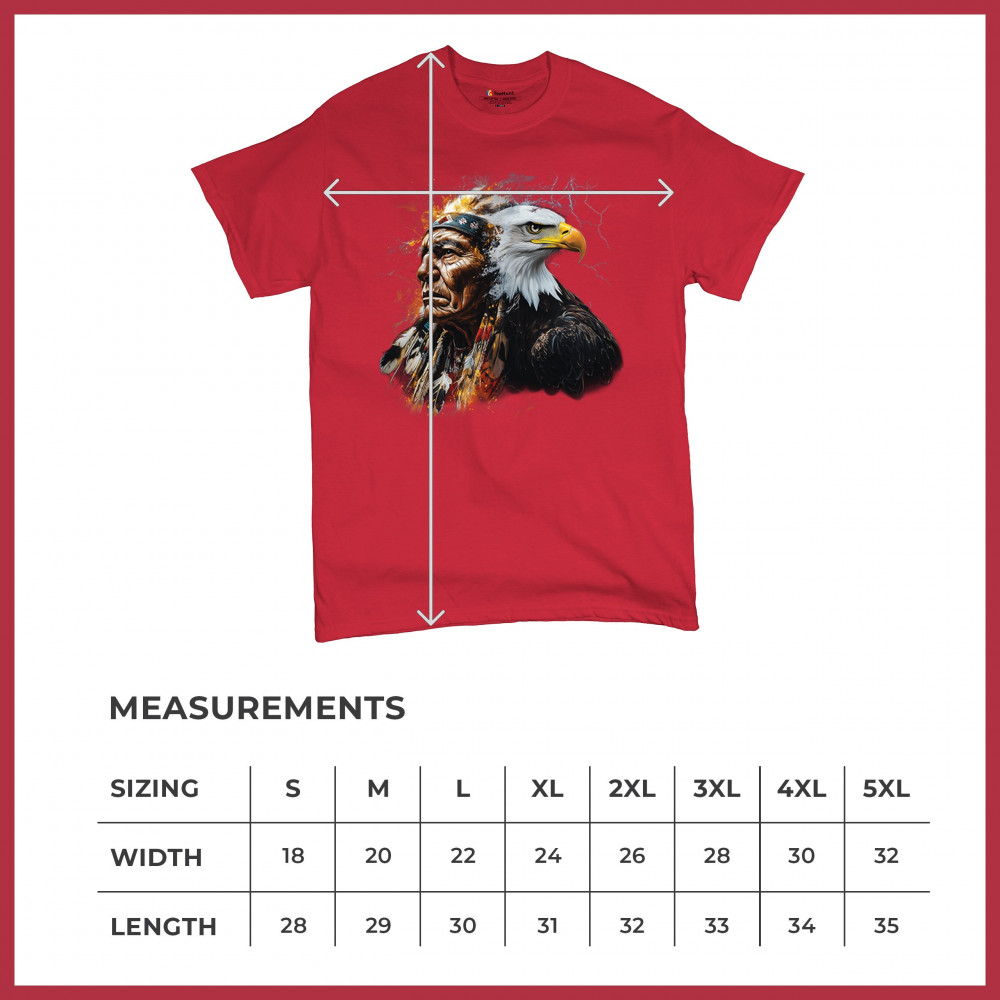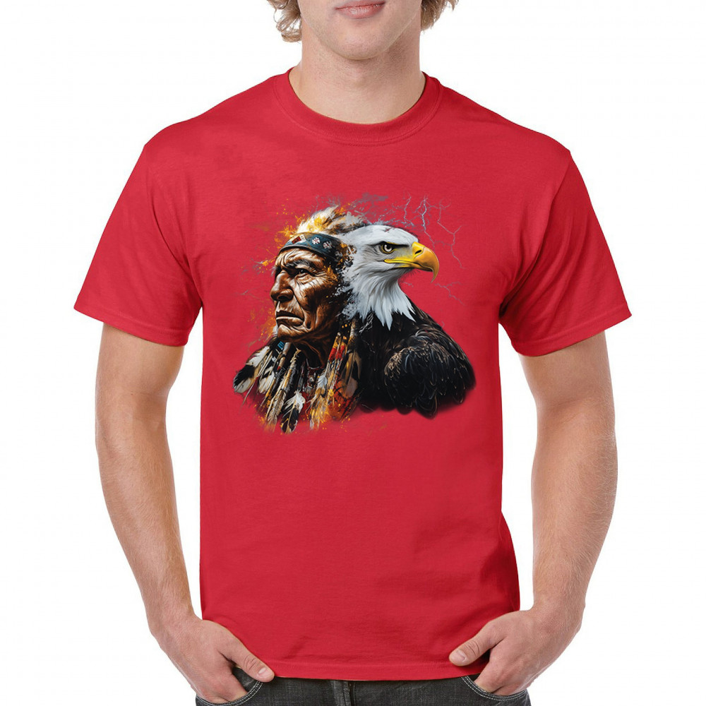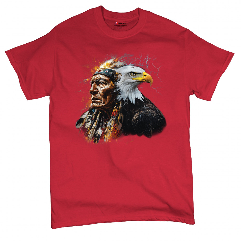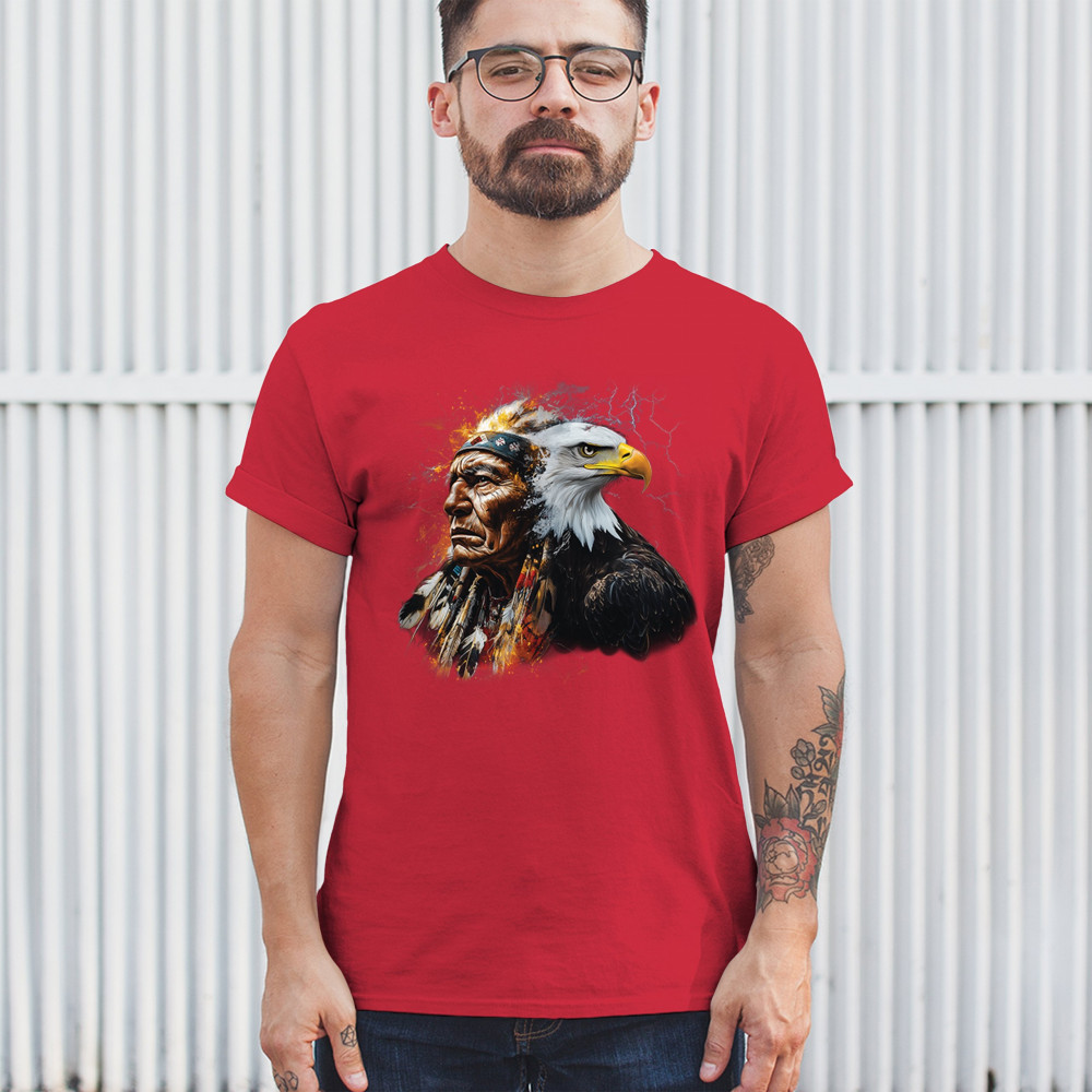 Bold tribal totem design with Native chief, eagle, lightning, and fire. A fierce blend of spirit, power, and cultural pride in one image.