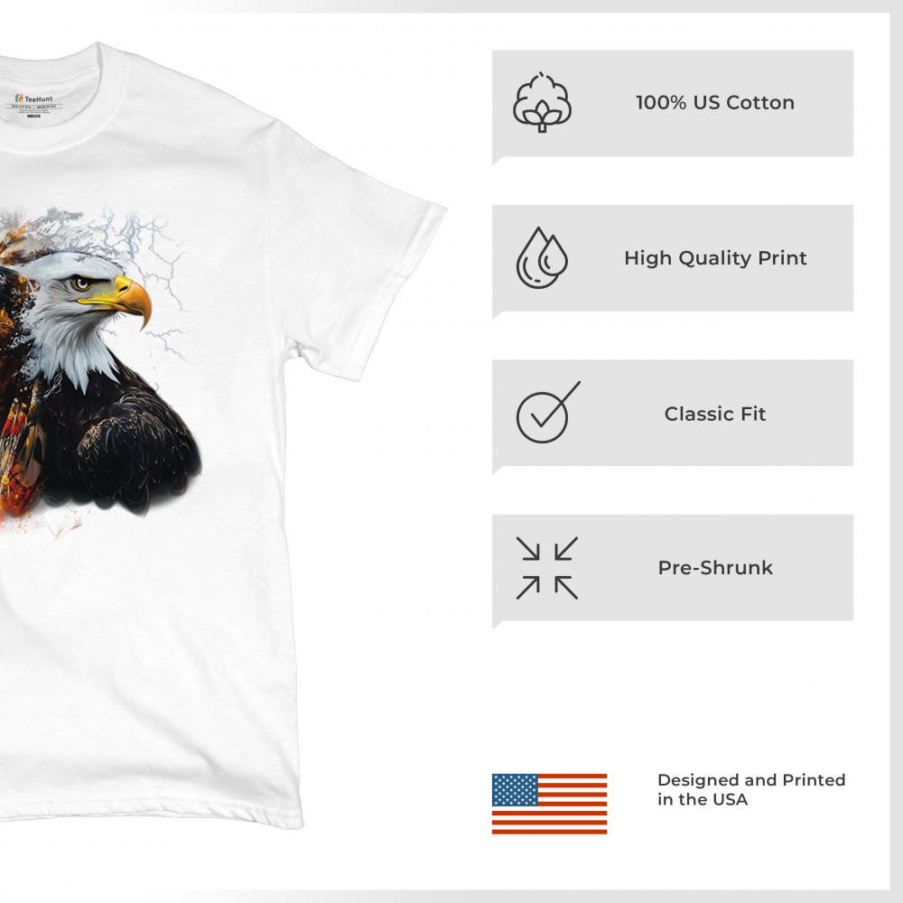 This electrifying design showcases a Native American chief with a bold bald eagle, surrounded by lightning and fire. It blends spiritual animal symbolism with cultural strength and pride. Ideal for admirers of tribal heritage, ancestral energy, and fierce visual storytelling through nature and tradition.