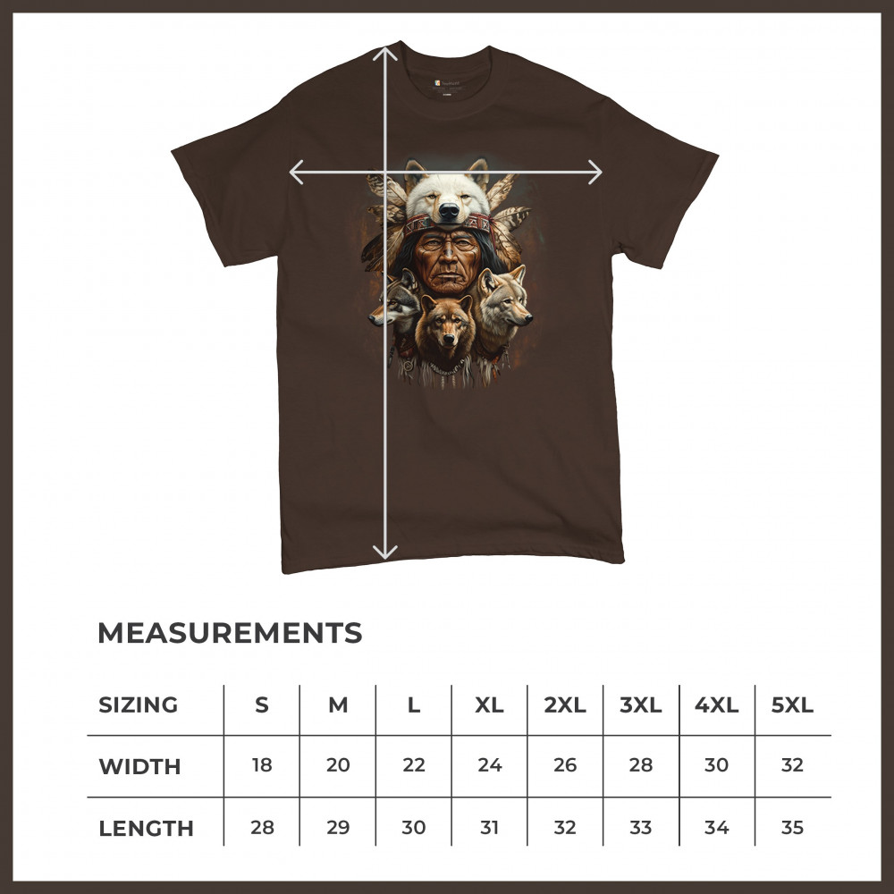 This spiritual tribal design showcases a Native American elder in a detailed wolf headdress surrounded by guardian wolves. It represents strength, loyalty, instinct, and sacred unity with nature. A powerful totem for honoring animal bonds, native pride, and ancestral spiritual guidance through the spirit of the wolf.