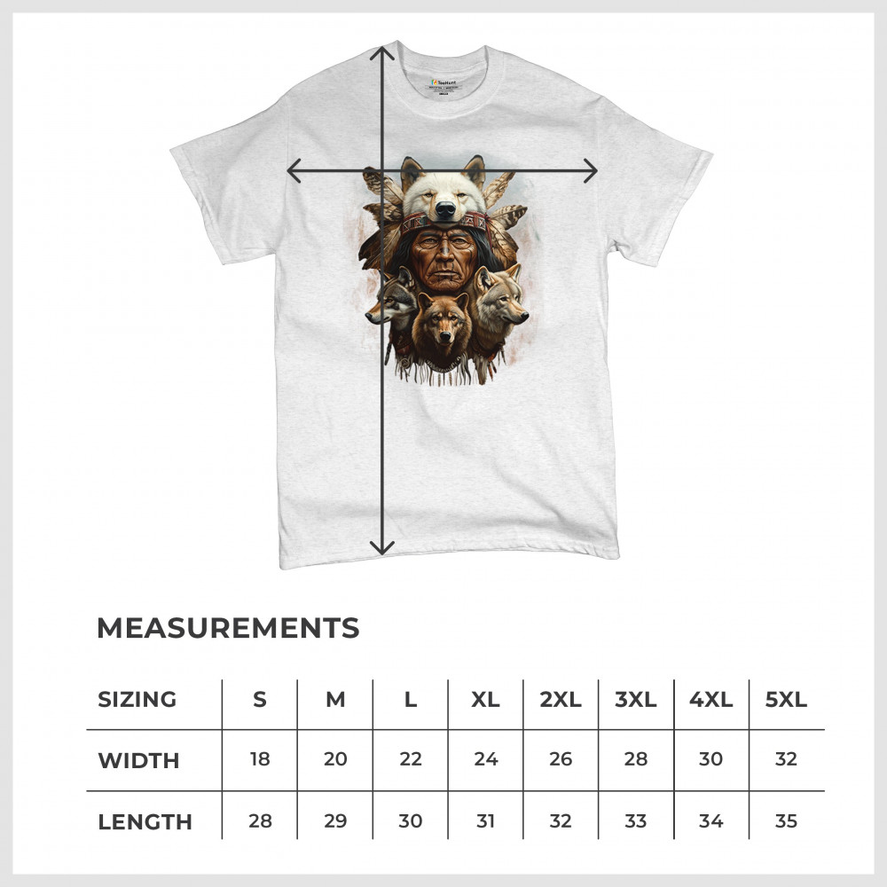 This spiritual tribal design showcases a Native American elder in a detailed wolf headdress surrounded by guardian wolves. It represents strength, loyalty, instinct, and sacred unity with nature. A powerful totem for honoring animal bonds, native pride, and ancestral spiritual guidance through the spirit of the wolf.