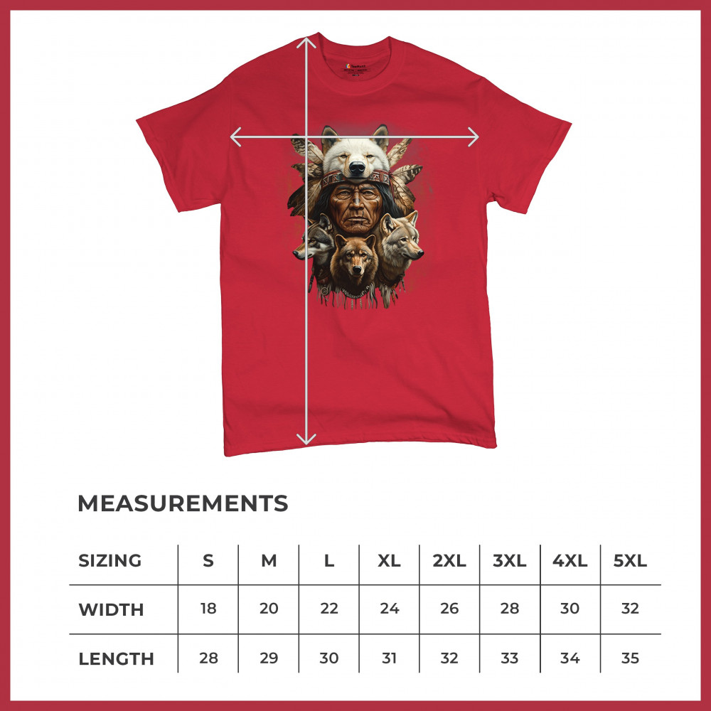 This spiritual tribal design showcases a Native American elder in a detailed wolf headdress surrounded by guardian wolves. It represents strength, loyalty, instinct, and sacred unity with nature. A powerful totem for honoring animal bonds, native pride, and ancestral spiritual guidance through the spirit of the wolf.