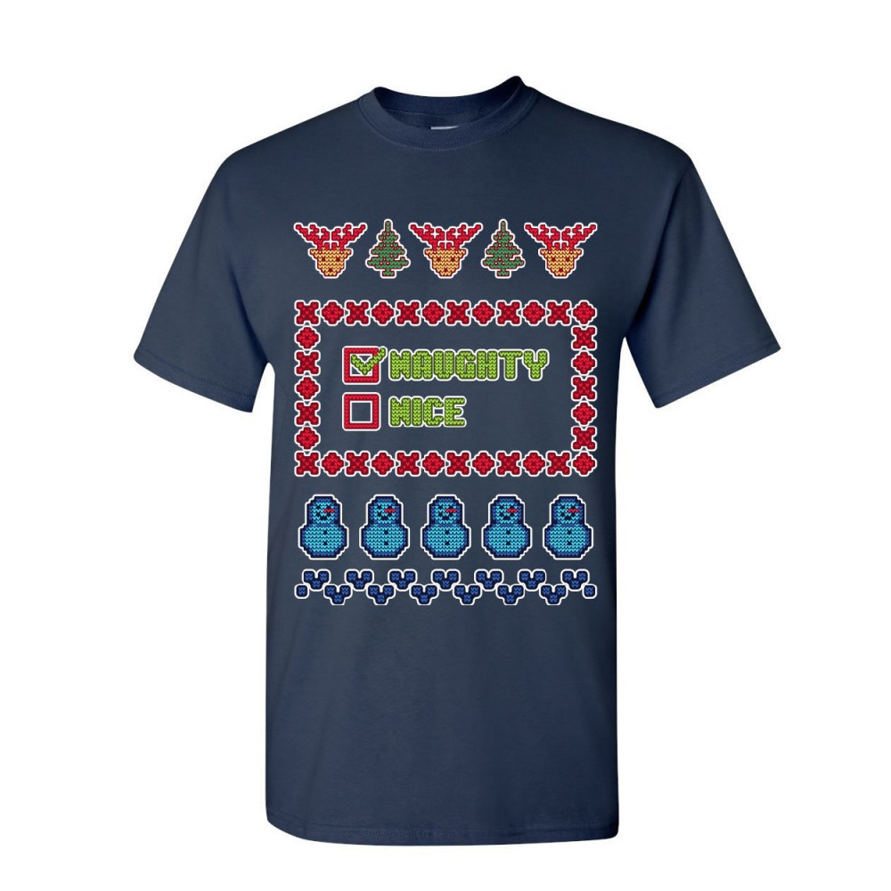 NAUGHTY OR NICE ugly sweater t-shirt christmas xmas holiday list mens tee shirt navy blue