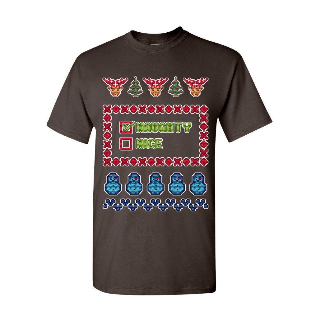 NAUGHTY OR NICE ugly sweater t-shirt christmas xmas holiday list mens tee shirt brown