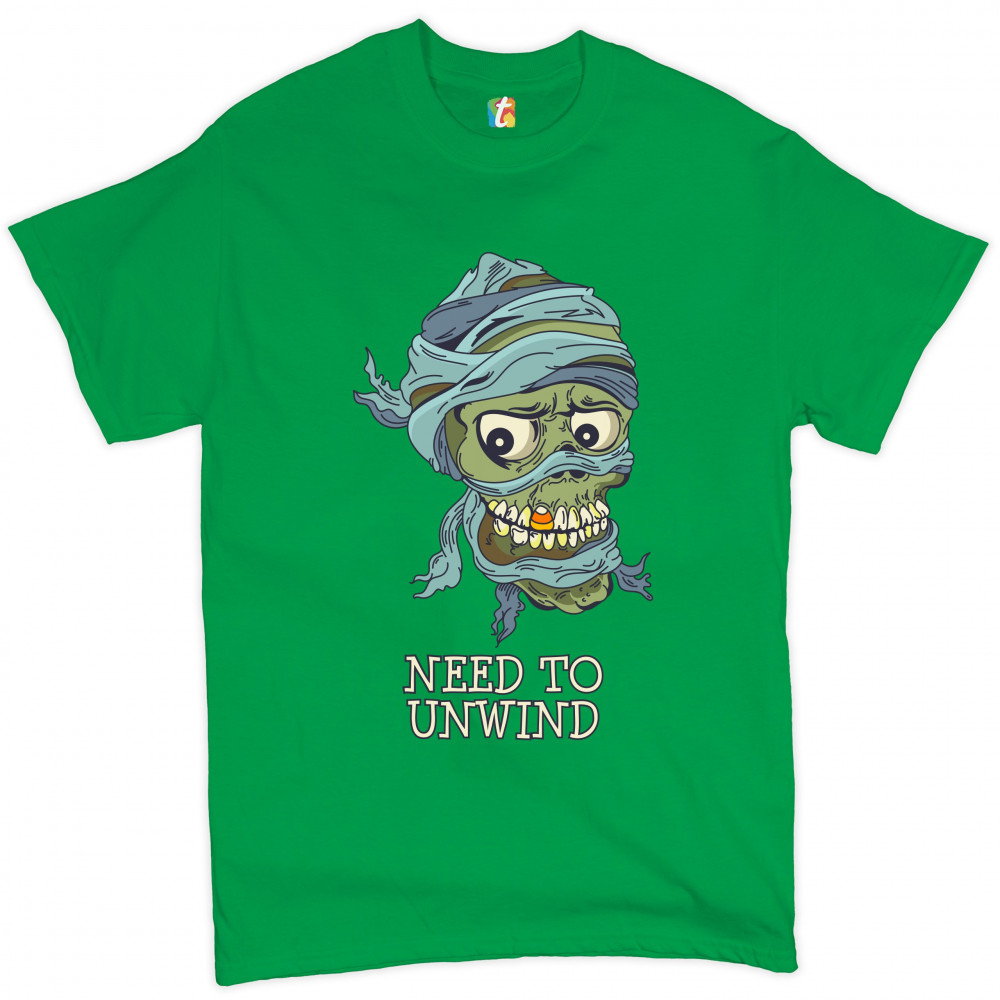 NEED TO UNWIND t-shirt funny halloween zombie trick-or-treat men's tee green