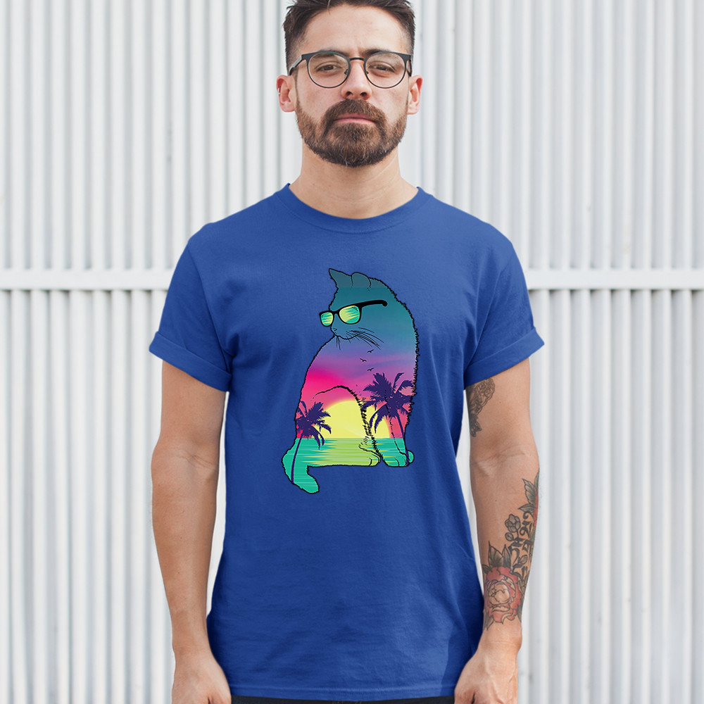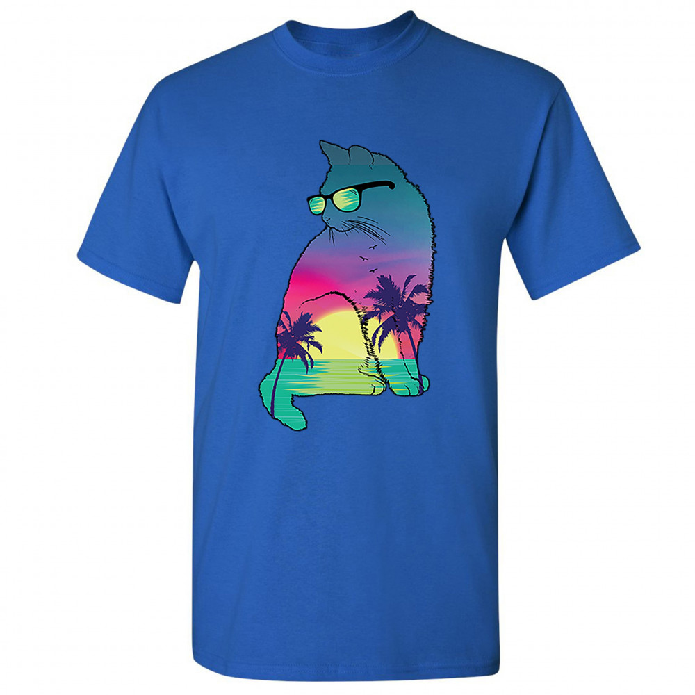 NEON CAT IN SUNGLASSES t-shirt tropic kitten summer beach kitty men's tee royal blue