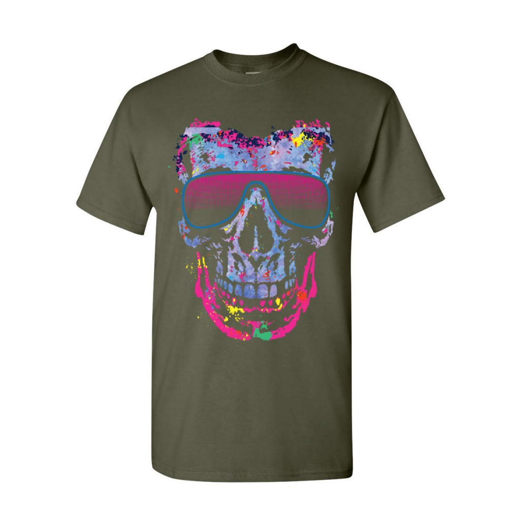 NEON SKULL SUNGLASSES t-shirt swag multicolor music edm rave pop mens tee shirt military green