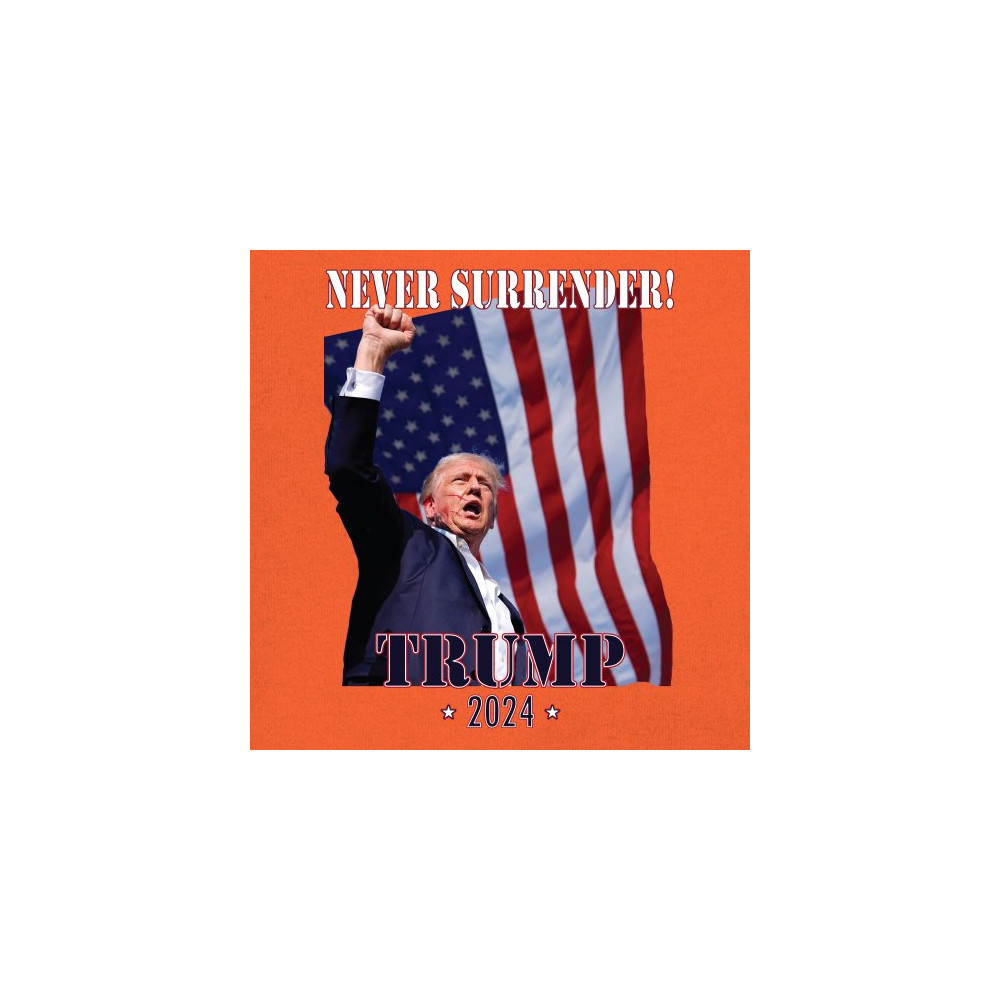 Celebrate your patriotic spirit and political stance with our "Never Surrender! Trump 2024" design. This powerful graphic showcases Donald Trump with a raised fist against the backdrop of the American flag, symbolizing resilience and determination. Ideal for rallies, events, and everyday wear, this design is crafted from premium materials for comfort and durability. Stand out and show your support for America's future with this striking and bold statement piece, perfect for any proud Trump supporter.