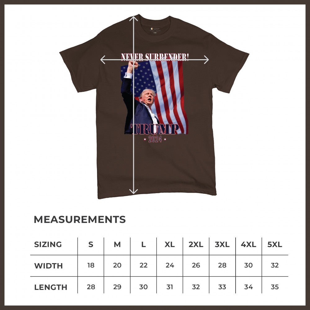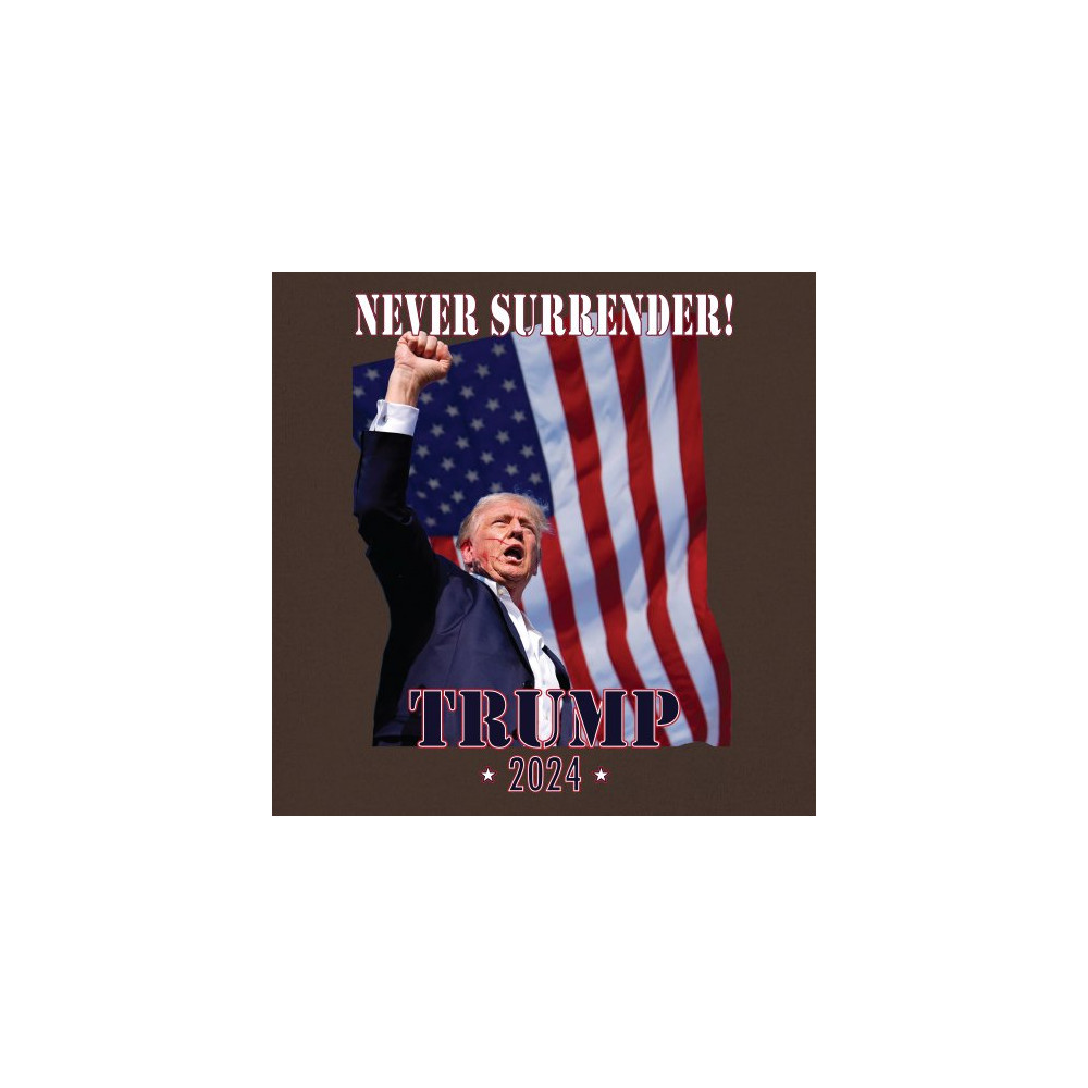 Celebrate your patriotic spirit and political stance with our "Never Surrender! Trump 2024" design. This powerful graphic showcases Donald Trump with a raised fist against the backdrop of the American flag, symbolizing resilience and determination. Ideal for rallies, events, and everyday wear, this design is crafted from premium materials for comfort and durability. Stand out and show your support for America's future with this striking and bold statement piece, perfect for any proud Trump supporter.