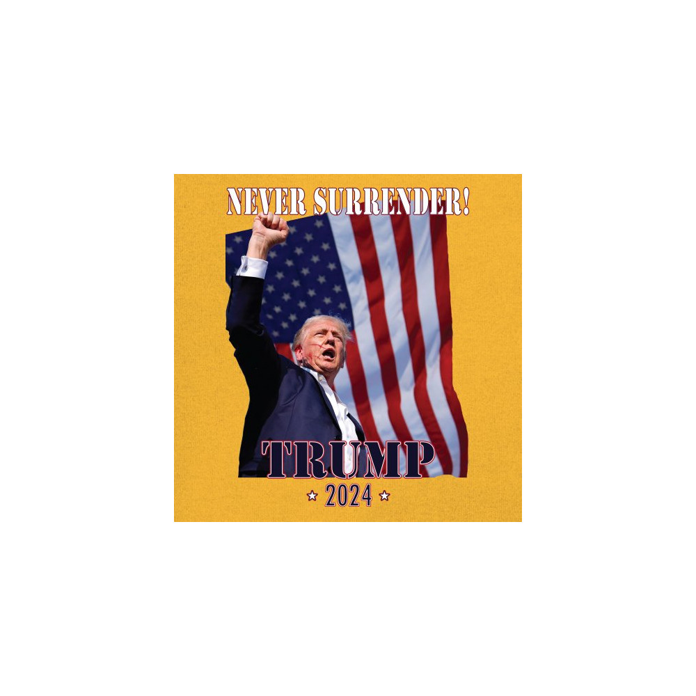 Celebrate your patriotic spirit and political stance with our "Never Surrender! Trump 2024" design. This powerful graphic showcases Donald Trump with a raised fist against the backdrop of the American flag, symbolizing resilience and determination. Ideal for rallies, events, and everyday wear, this design is crafted from premium materials for comfort and durability. Stand out and show your support for America's future with this striking and bold statement piece, perfect for any proud Trump supporter.