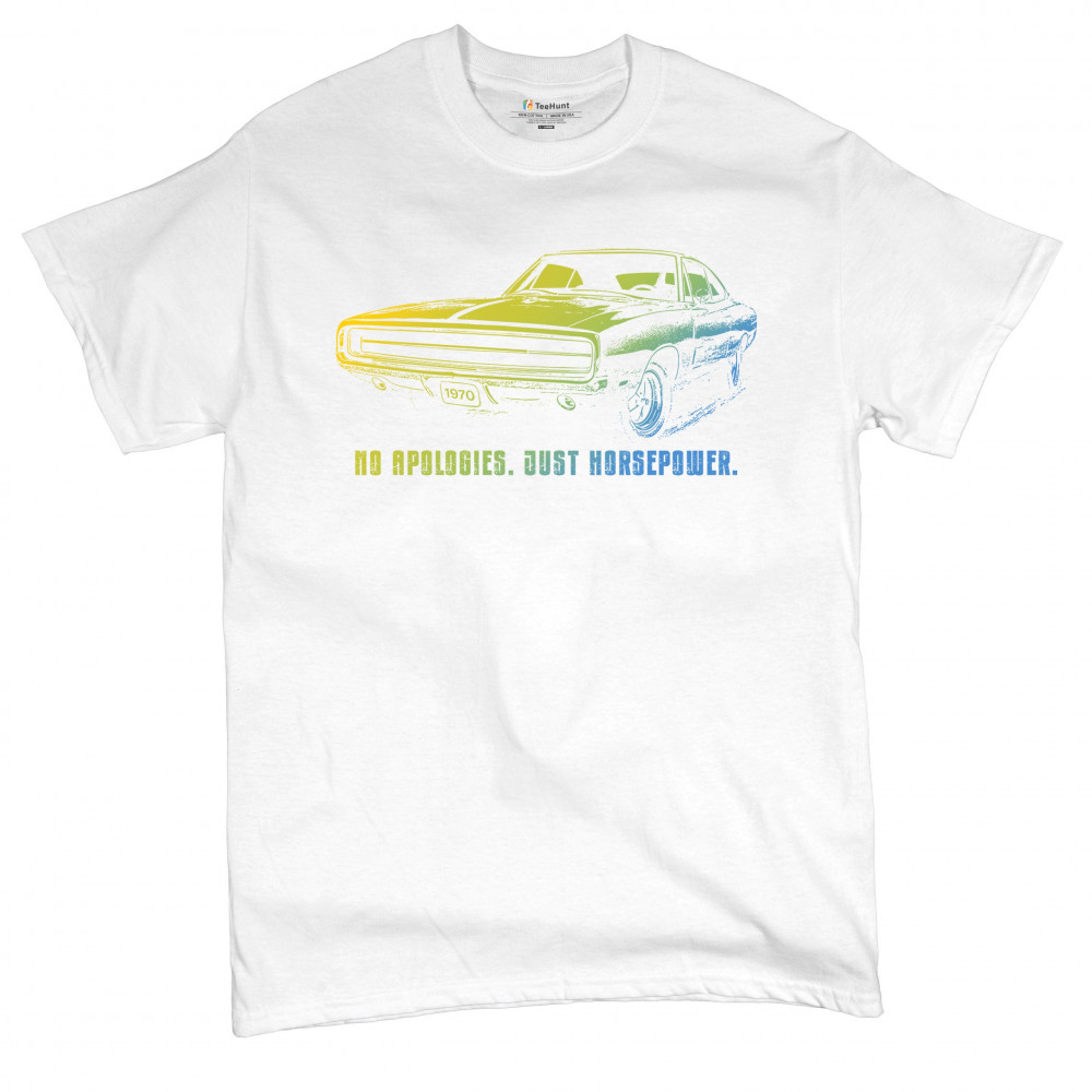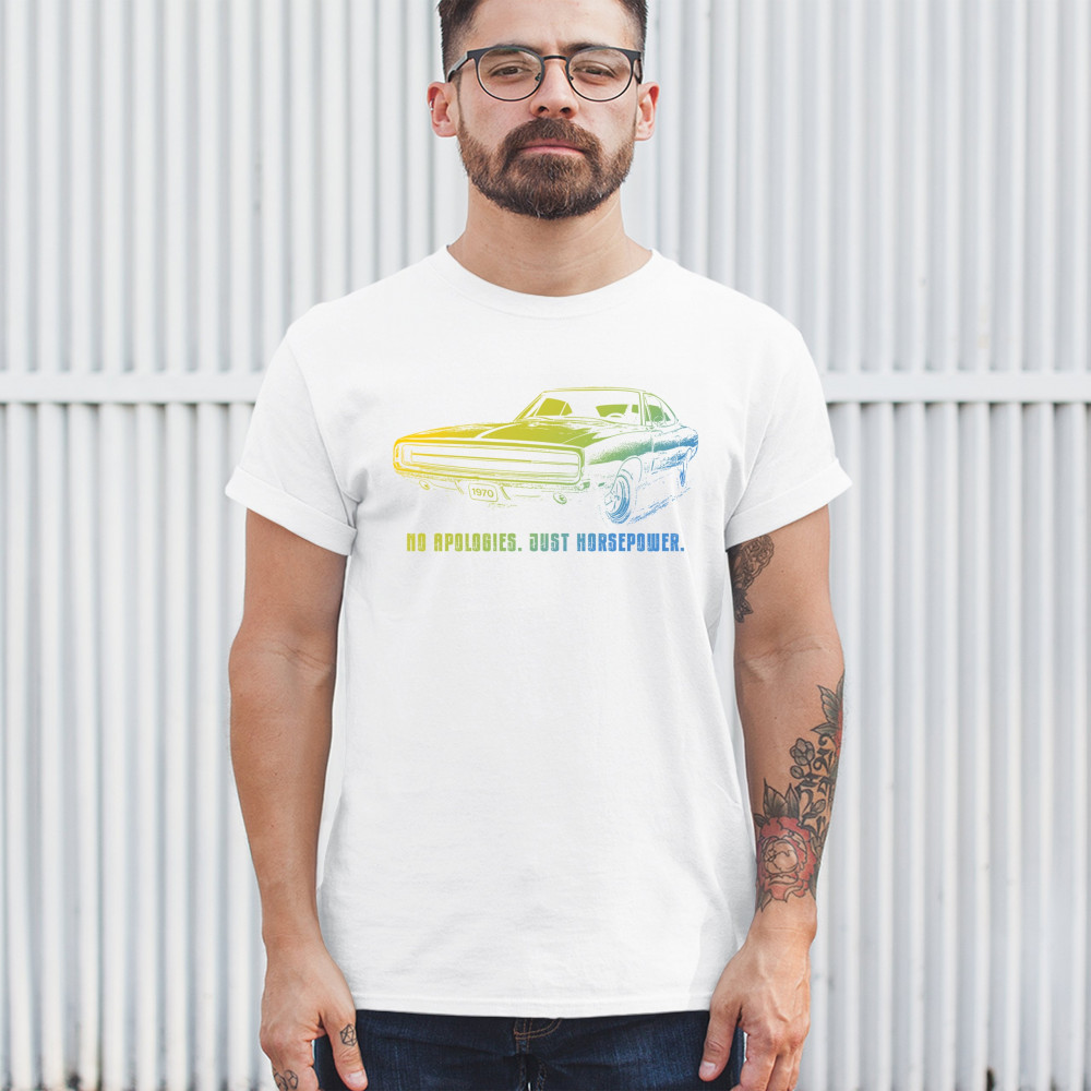 Bold 1970 muscle car design with gradient pop. No apologies, just horsepower—perfect for car shows, gearheads, and performance lovers.