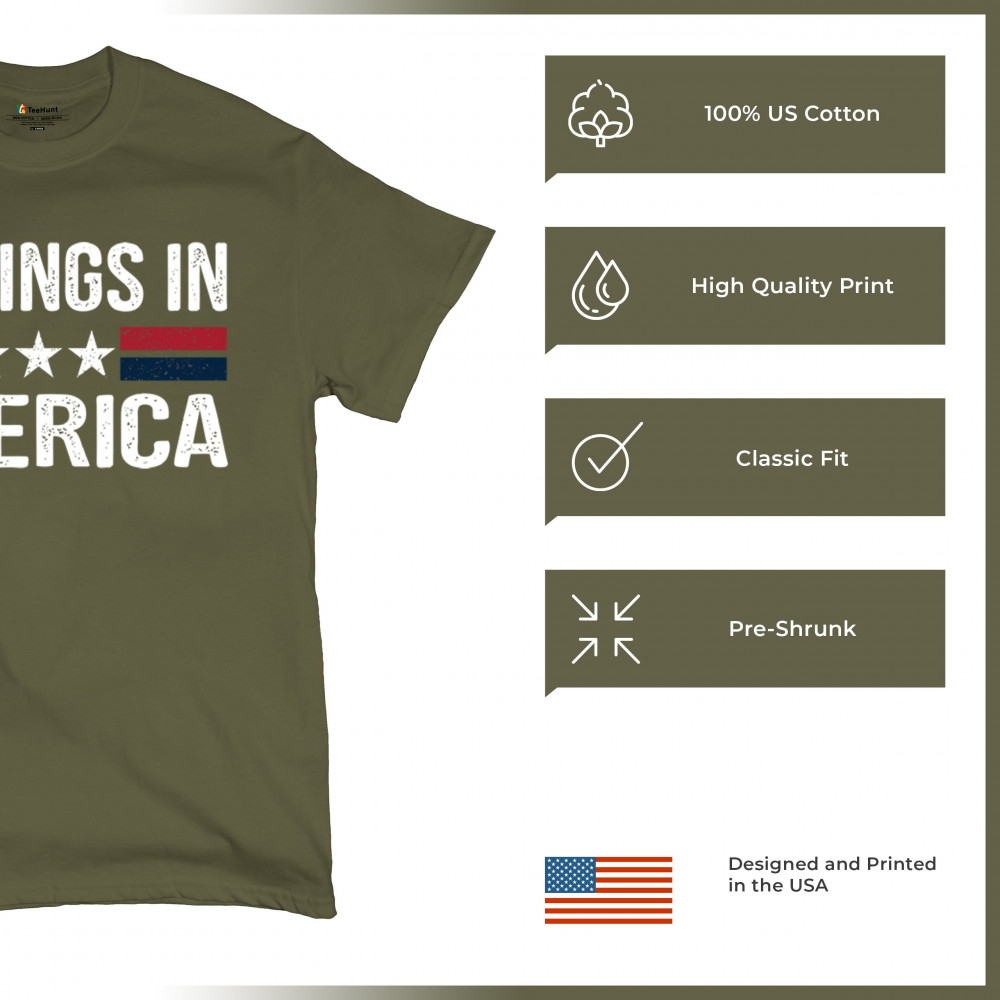 Show your patriotic spirit with the "No Kings in America" design—a bold declaration of freedom and civic pride. Featuring classic red, white, and blue tones, it's perfect for Fourth of July celebrations, political events, or history lovers. Celebrate democracy and independence with style and purpose.
