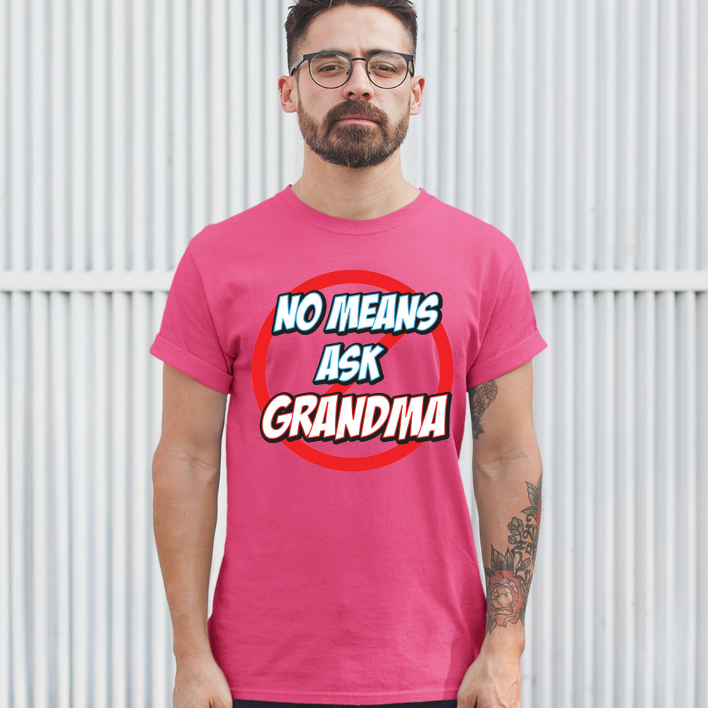 NO MEANS ASK GRANDMA t-shirt granny mother's day funny mimi nana men's tee hot pink