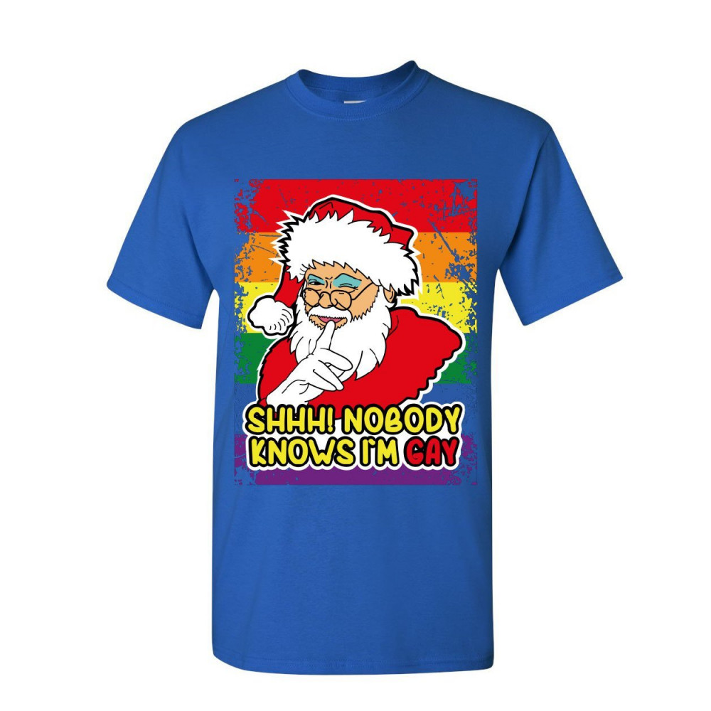 NOBODY KNOWS I'M GAY t-shirt christmas santa lgbt xmas ho ho ho mens tee shirt royal blue
