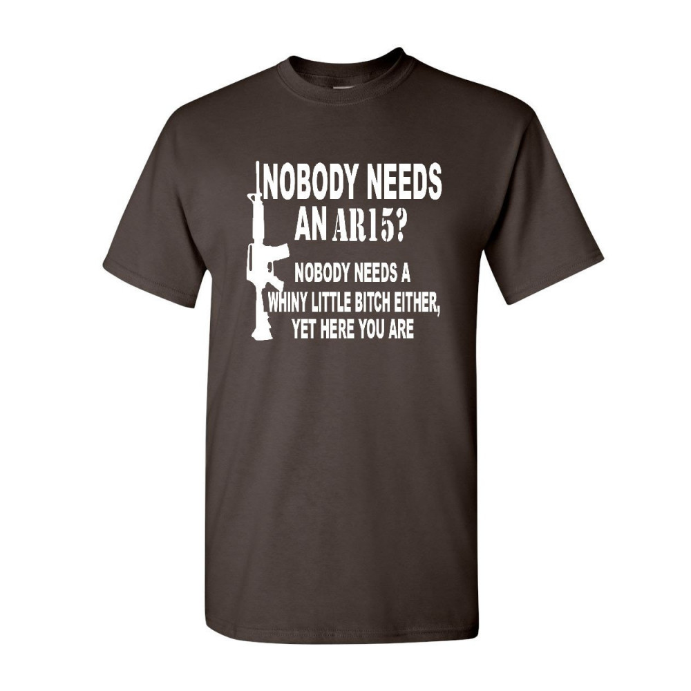 NOBODY NEEDS AN AR15? t-shirt funny offensive humor political firearms gun rights tee shirt brown