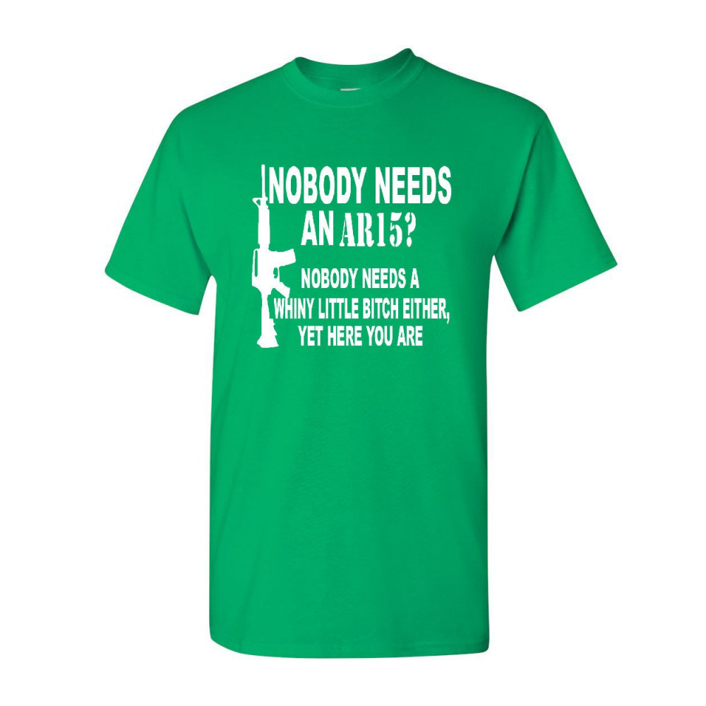 NOBODY NEEDS AN AR15? t-shirt funny offensive humor political firearms gun rights tee shirt green