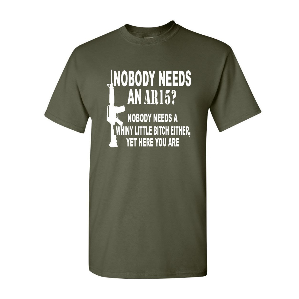 NOBODY NEEDS AN AR15? t-shirt funny offensive humor political firearms gun rights tee shirt military green