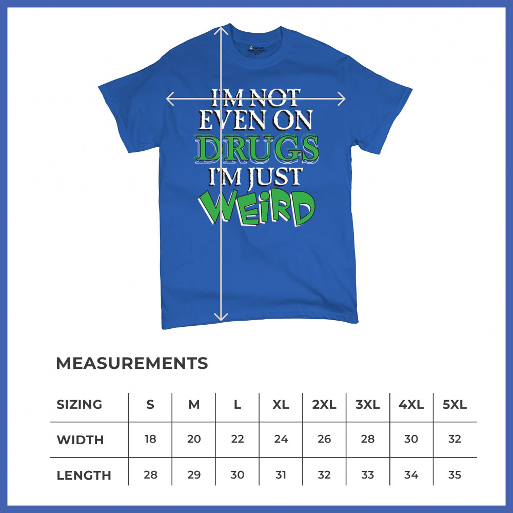 Celebrate the wonderfully strange with this bold design that says, “I'm not even on drugs I'm just weird.†Built for introverts, oddballs, and uniquely wired minds, it blends chaotic humor with loud personality. A perfect fit for those who proudly live outside the lines—and love it that way.