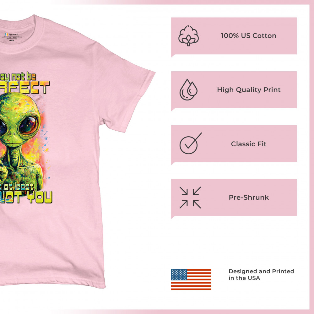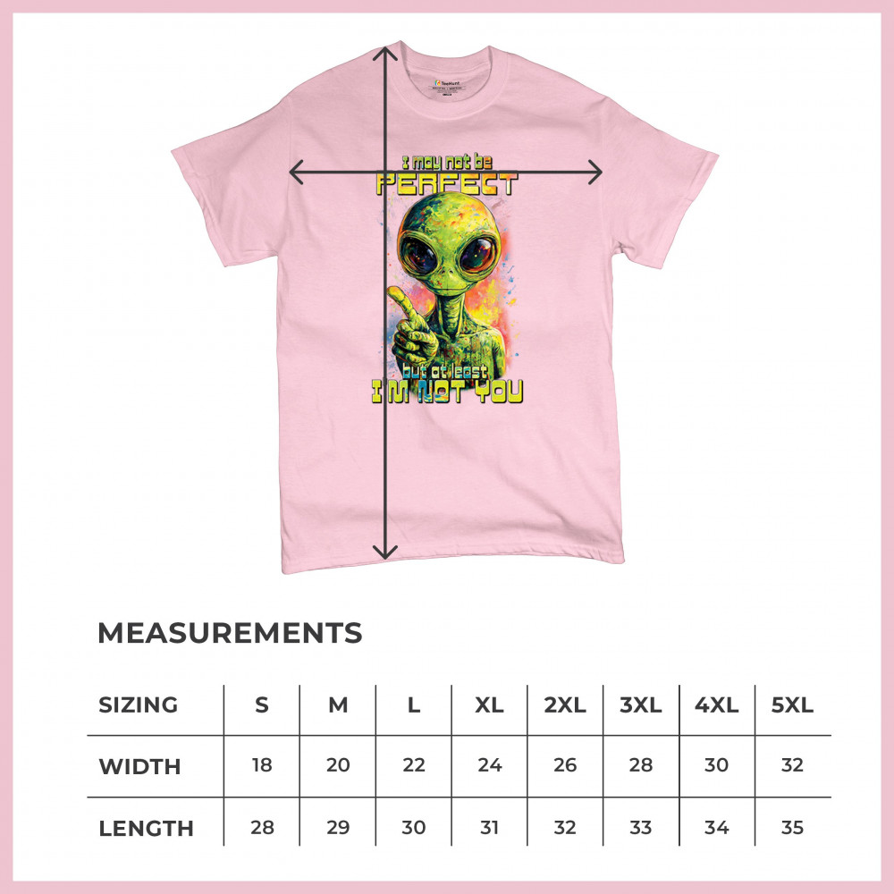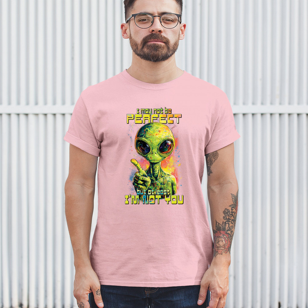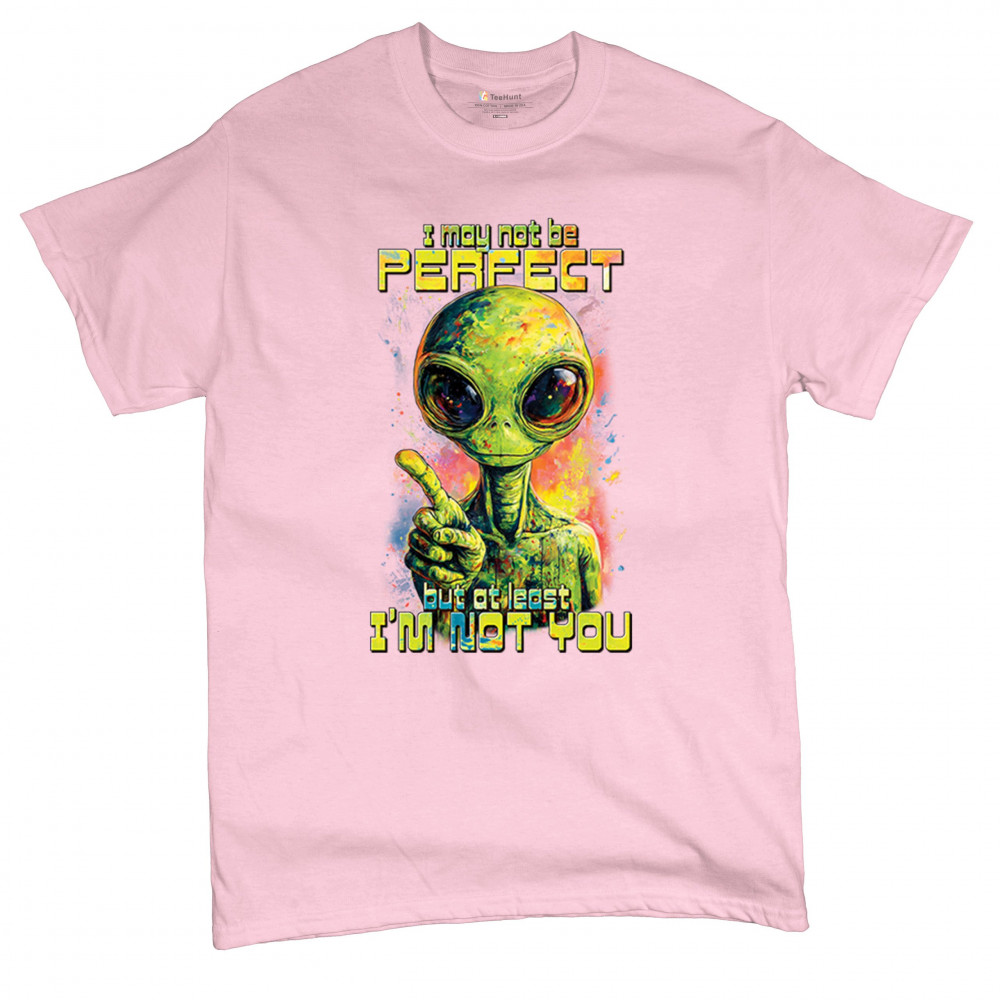 This smug alien design delivers sharp sarcastic humor with vibrant cosmic flair. Featuring a big-eyed extraterrestrial and the quote “I may not be perfect, but at least I’m not you,†it’s perfect for sci-fi fans, alien lovers, jokesters, and oddballs alike. A bold, funny statement for parties, UFO events, and festivals.