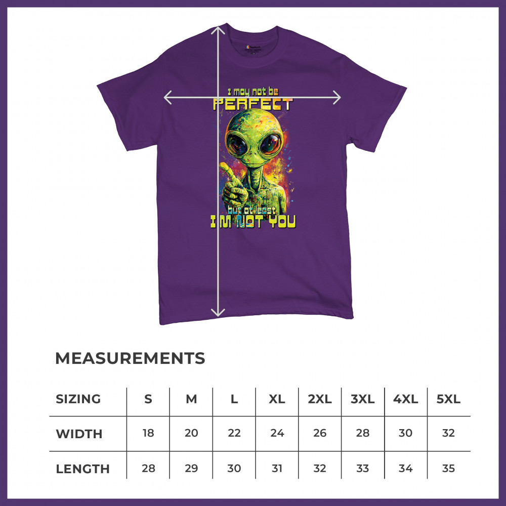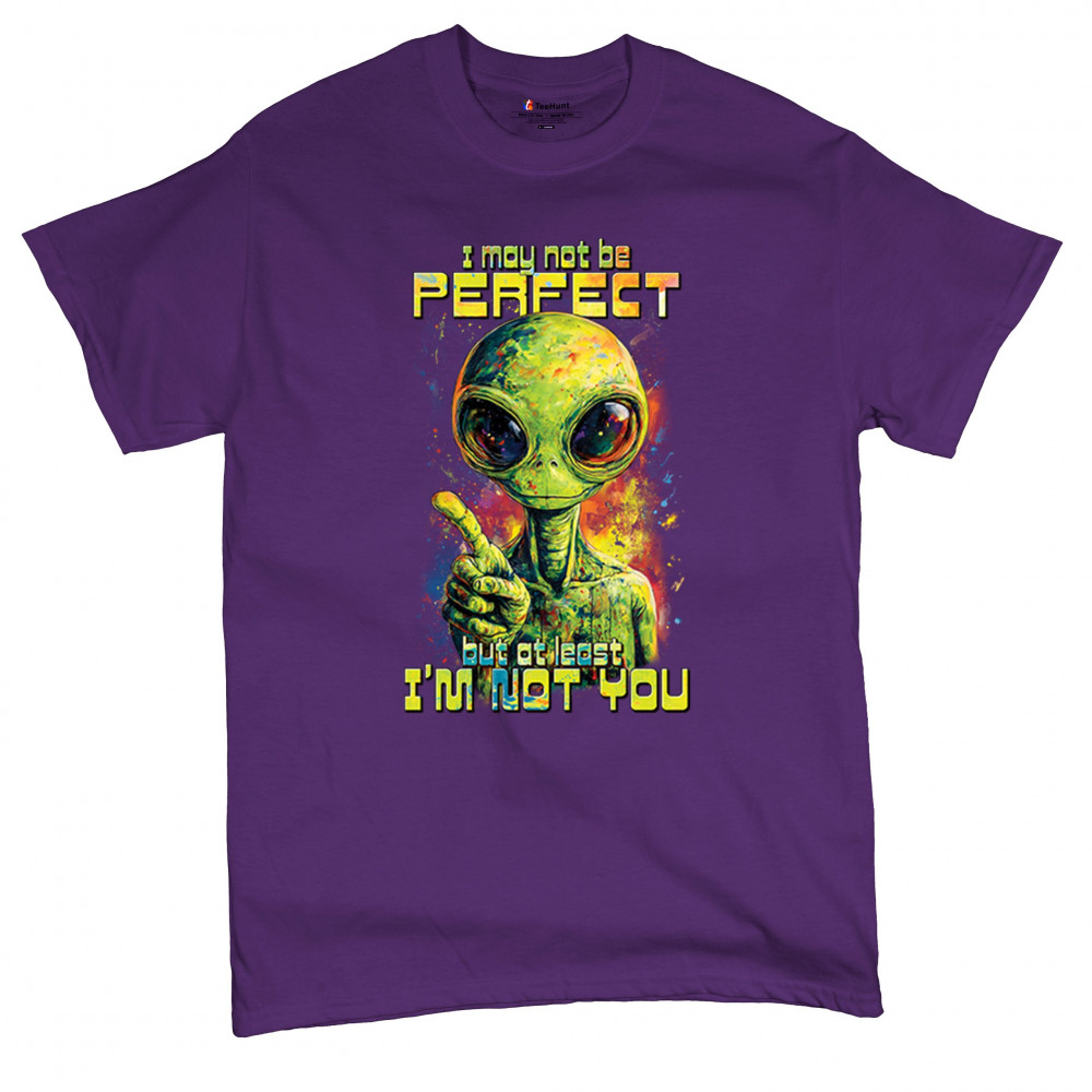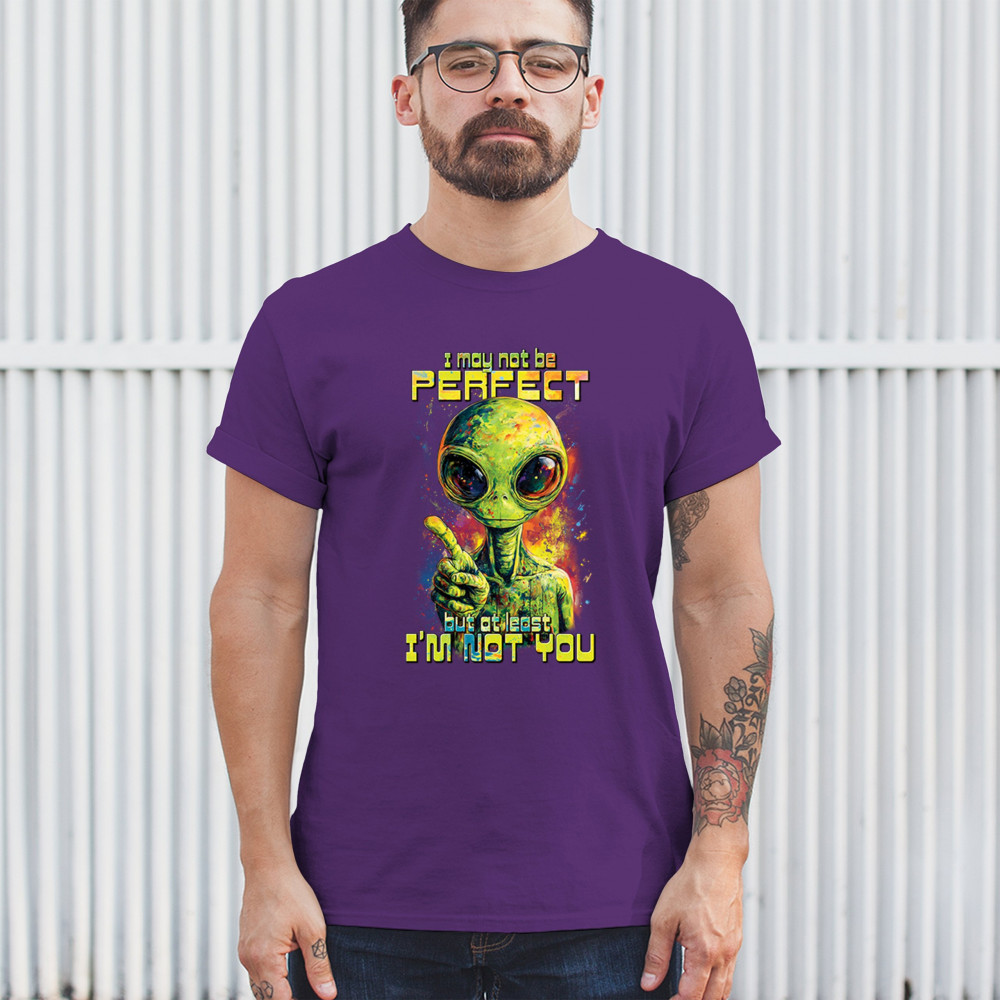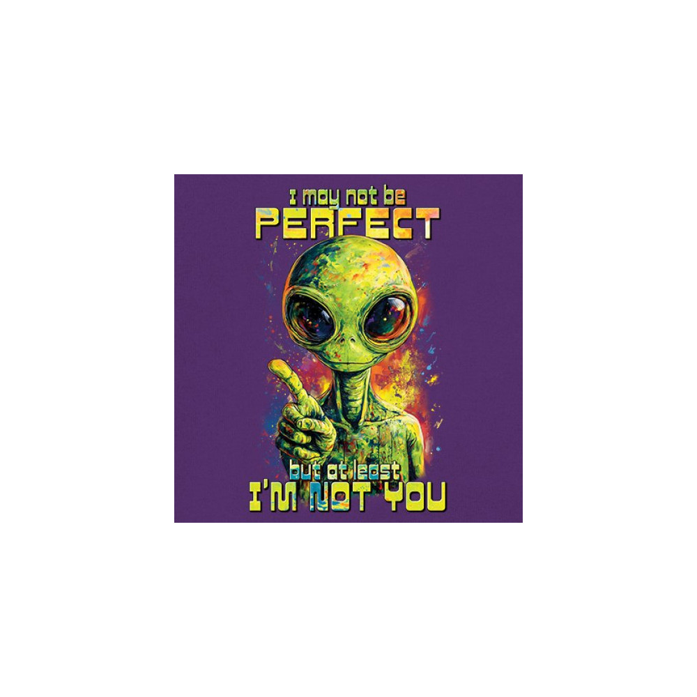This smug alien design delivers sharp sarcastic humor with vibrant cosmic flair. Featuring a big-eyed extraterrestrial and the quote “I may not be perfect, but at least I’m not you,†it’s perfect for sci-fi fans, alien lovers, jokesters, and oddballs alike. A bold, funny statement for parties, UFO events, and festivals.