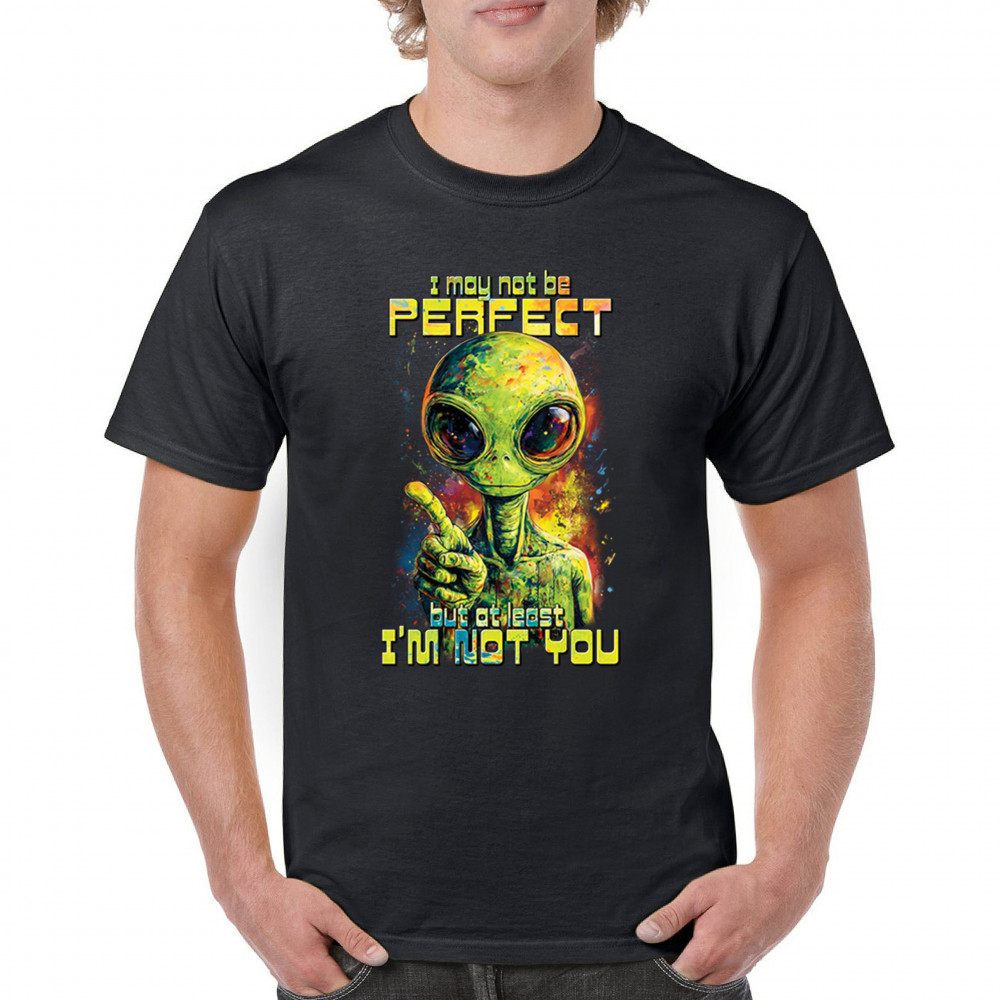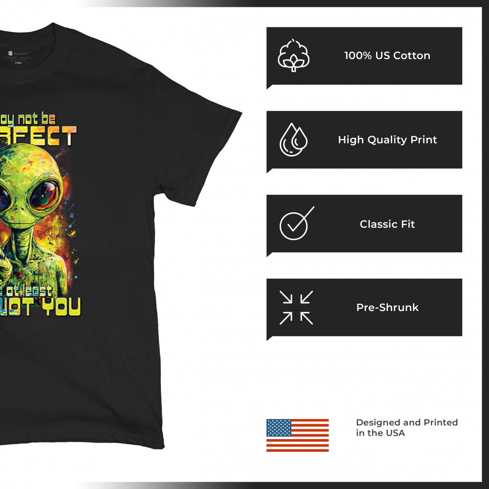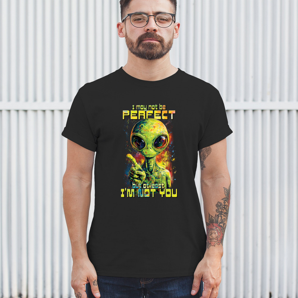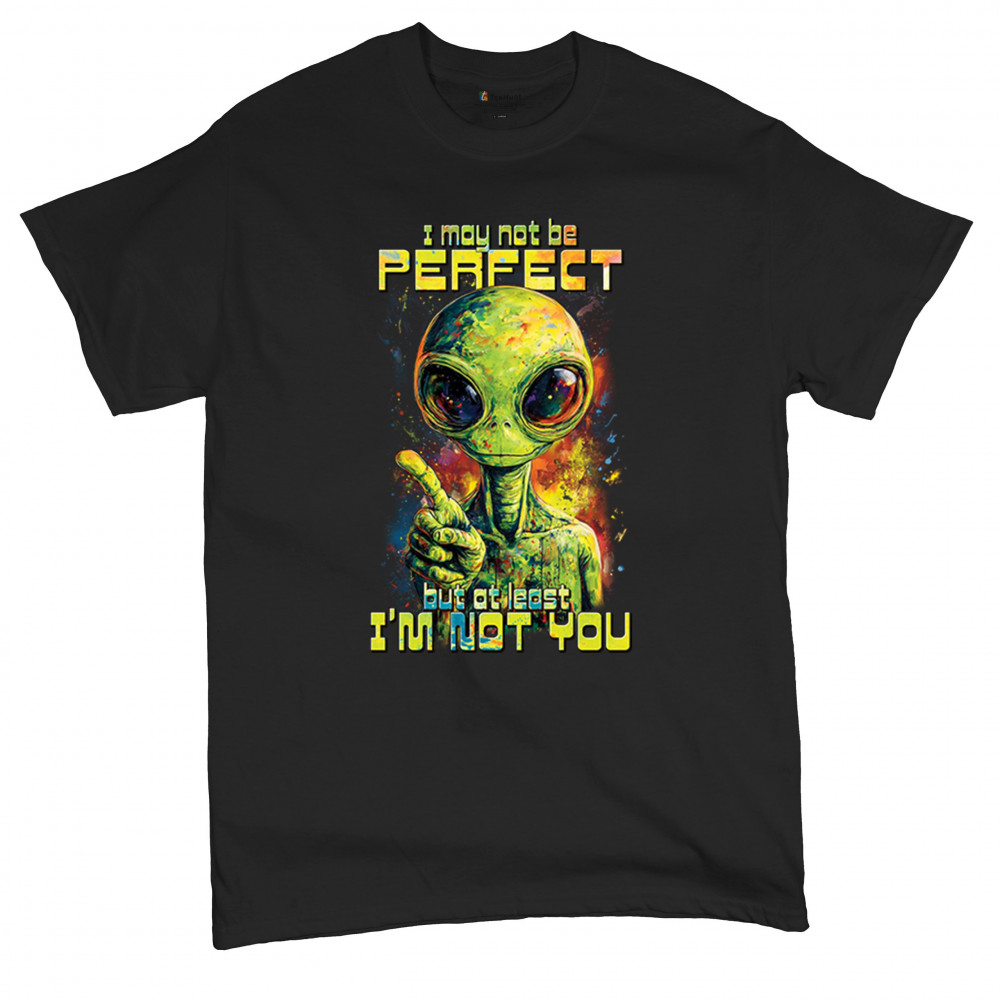 NOT PERFECT BUT AT LEAST NOT YOU t-shirt funny alien ufo humor men's tee black