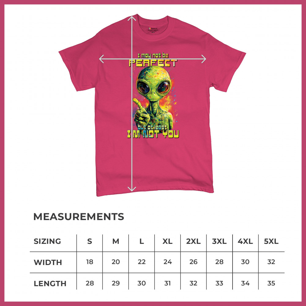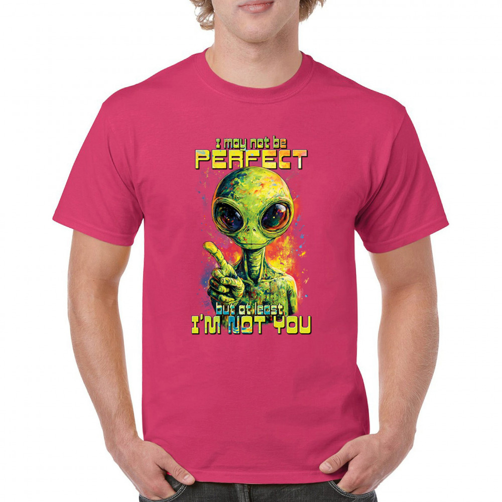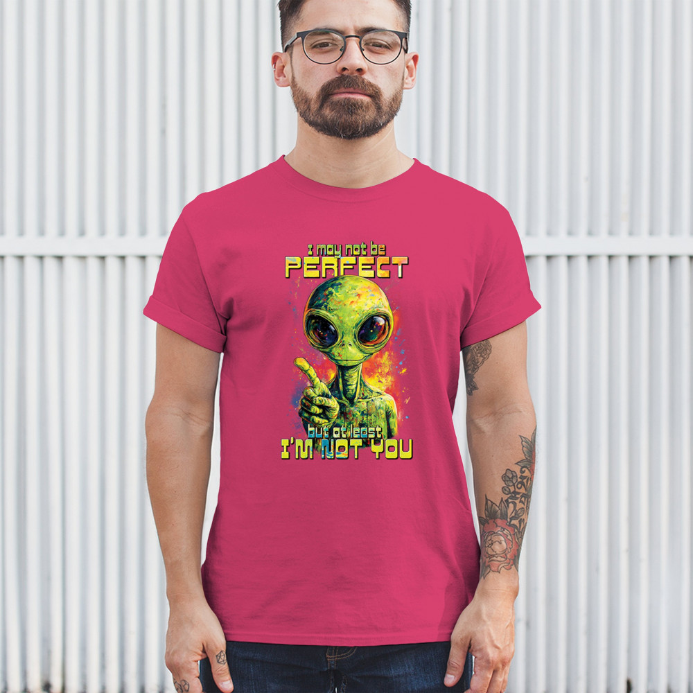 This smug alien design delivers sharp sarcastic humor with vibrant cosmic flair. Featuring a big-eyed extraterrestrial and the quote “I may not be perfect, but at least I’m not you,†it’s perfect for sci-fi fans, alien lovers, jokesters, and oddballs alike. A bold, funny statement for parties, UFO events, and festivals.