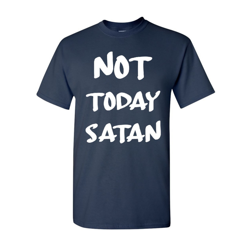 NOT TODAY SATAN t-shirt religious funny jesus religion faith navy blue