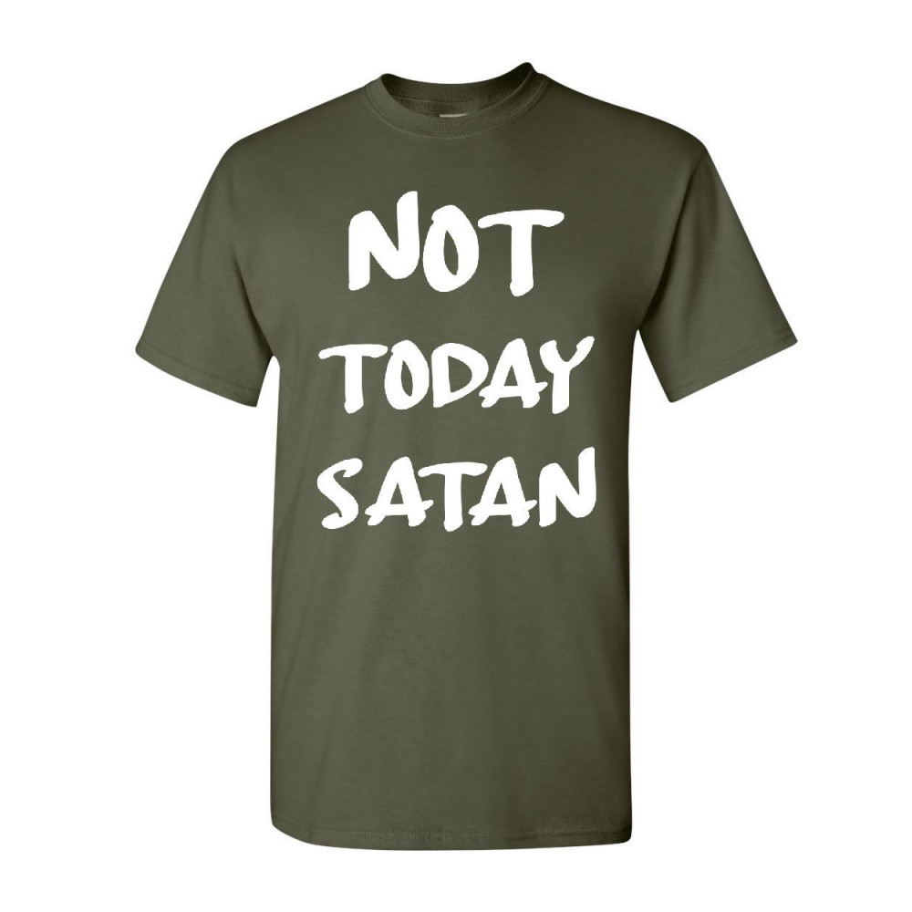 NOT TODAY SATAN t-shirt religious funny jesus religion faith military green