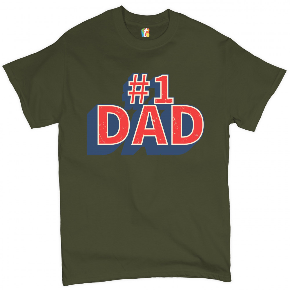 NUMBER 1 DAD t-shirt father's day world's greatest dad fatherhood men's tee military green