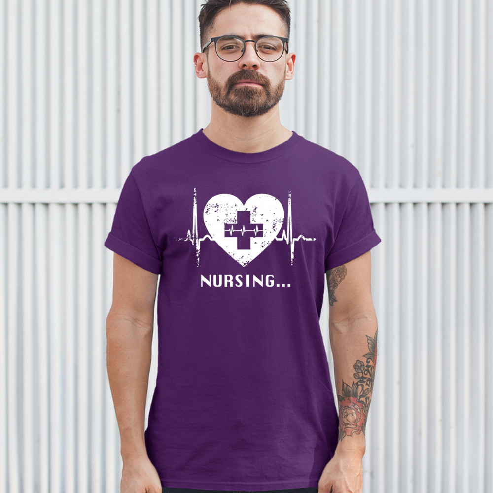 NURSING HEARTBEAT t-shirt cpr first aid medical assistant emt ems men's tee purple