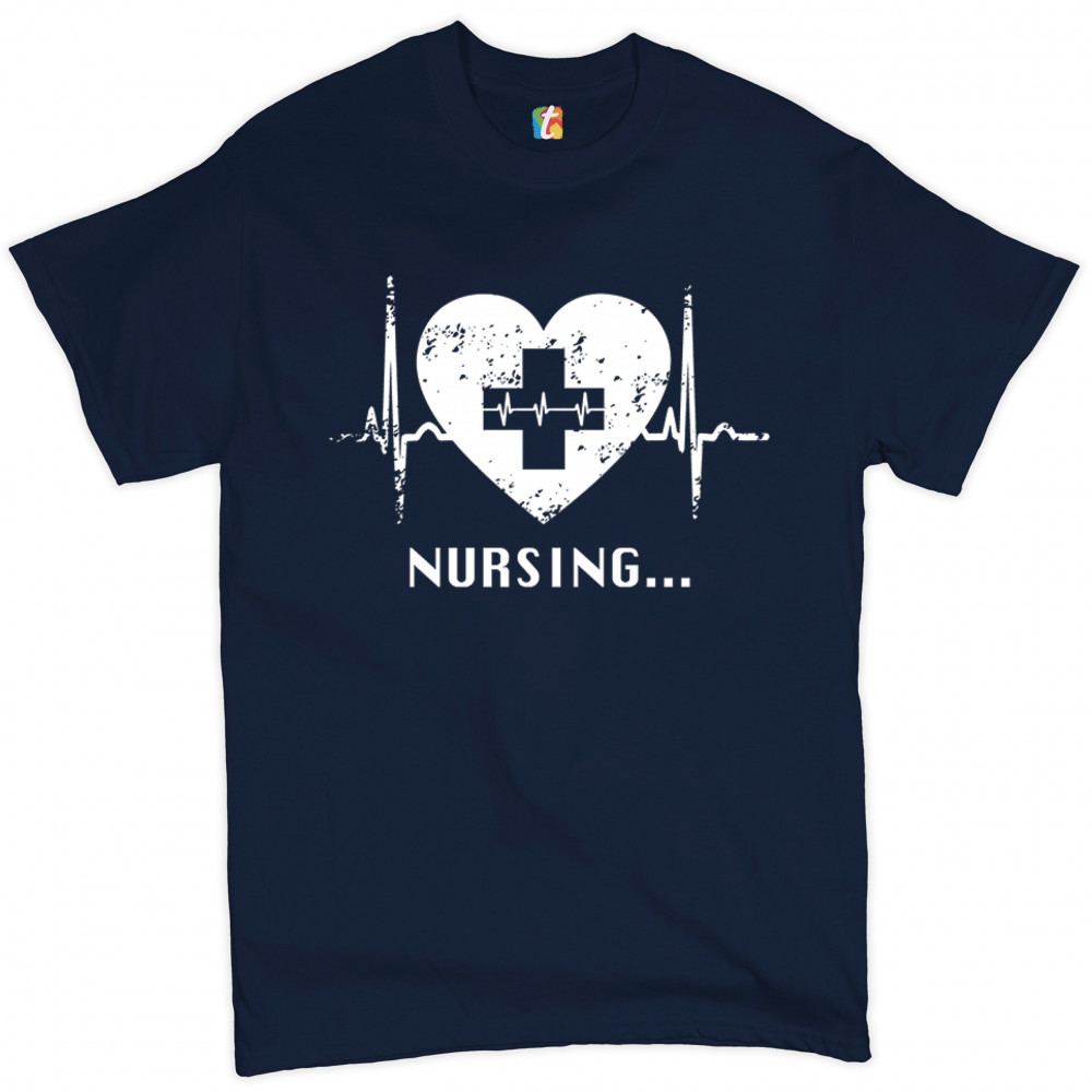 NURSING HEARTBEAT t-shirt cpr first aid medical assistant emt ems men's tee navy blue