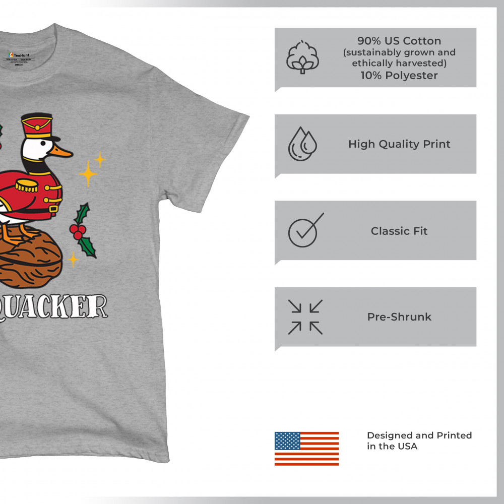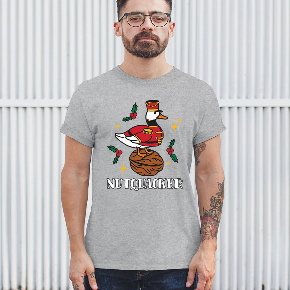 Funny Nutquacker Christmas design featuring a festive duck, holiday humor, and seasonal charm. Great for parties, gifts, and cheerful holiday style.